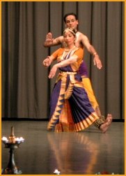 Saturday, November 2, 2002, I had the great pleasure of attending a Bharatanatyam dance recital at the Hochschule für Architektur and Technik in Berne, Switzerland. Christian Meyer, president of the Verein Pro Schule Bangalore, presented a brief history of the school founded in 1994 in Bangalore with 49 students and one teacher. Since 1994, the school has grown to over 250 students, 7 teachers and 1 assistant. The Verein created in 1999 provides books and other materials, 1 meal per day for each student, and clothing to provide an education for children whose parents could not otherwise afford to send them to school. Dancers, Sathyanarayana Raju, Director of the Samskruthi Dance School of Bangalore, and Lakshmi K Devadas of Fribourg graciously donated all proceeds from their dance performance to benefit the school. Mr. Meyer introduced Mr. Maurer who told us about the special Bharathanatyam South Indian temple dance form. Shri Sathyanarayana Raju is a Bharathanatyam, Kuchipudi, and Kathak dancer and choreographer from Bangalore, India. He is renowned for his precise and detailed interpretation of the classical form of Bharathanatyam. Director of the dance school, ‘Samskruthi,’ in Bangalore, he started his dance education with Guru Subhadra Prabhu and is now continuing with Guru Narmada and Guru Bhanumathi in Bangalore. He has previously performed and conducted dance workshops in Switzerland and America. Shrimati Lakshmi K Devadas is a Bharathanatyam dancer from Coimbatore, now living in Fribourg, Switzerland. Lakshmi began her Bharathanatyam education in the Tanjore Pandannalur style with Guru Ganapathiappan in Coimbatore, India, and continues her dance education with Guru Sathyanarayana Raju in India. She also trains with Smt. Maithry Rao in Bangalore, and Shri. D. Keshava from Basel. “In the dancers, you can see a form of their honoring God,” Mr. Maurer says. “In Indian culture, song is always a form of praising god. Indian dance is almost always danced to a song. The dances are very complex and never repeat. The dancer is the servant of the lord. Sathya Raju gives a very precise interpretation of Bhararthanatyam dance. In this first dance, Pushpanjali, (Raga Amrthavarshini), you will see a flower chain, a call from God to you, which will join you with the dancers in a form of prayer." The second dance, Ananda Natanam Aduvaar, (Raga Poorvakalyani), is a remembrance of the Cosmic World Dance. Sathya Raju depicts Lord Nataraja as he dances to create the world. In so doing, Lord Nataraja releases a demon, Muyalaga, and a snake, Ganga. He ensnares Ganga in his matt of hair, kills Muyalaga, standing on him with his foot and lifting his left foot. He adorns the serpent as his ornament. As Sathya Raju dances, his facial expression, eyes, eyebrows, mouth are part of the dance. He wears bells around his ankles, slaps the ground with his bare feet as though these are musical instruments. He is musician and dancer. The third dance, Devaranama, Hariaadiutha, (Raga Hamsanandi) is danced to a popular composition from Saint Purandaradasa, which describes the divine dance of Lord Krishna to the accompaniment of bells. Lord Krishna is adorned with a pearl necklace at his throat, a crown jewel on his head, and bracelets on his hands. Saint Purandaradasa who composed a few hundred wonderful songs, set standards in Carnatic music, especially dance music. As we listen and watch, the dancers make Purandaradasa’s song visible before our eyes. The fourth dance, Thillana, (Raga Ratipatipriya), is a dance of ecstasy and joy. Sathya displays a succession of foot rhythms and sculpturesque poses with playful eyes, graceful movement of arms and body. I can still see his eyebrows trembling when I think of this. The dance is pure rhythms. Sathya’s precision is breath taking, his agility and stamina astounding, his aramandi impeccable. How complex is the dance! Each movement of his body tells the story described by song. Fingers and hands, face, eyes, brow, lips, every part of him tells the story. He has become the story. It appears as if he is a god made flesh. When the movement of the dance hangs suspended, his balance is perfect; the silence of the bells, pure. The final dance, Nagendraharaya, (Raga Ragamallika), is a hymn in praise of Lord Shiva who wears a snake around his neck and has a third eye on his forehead, always pure, with the Ganges river flowing from his head and sandal paste on his skin. Lord Shiva makes the Ganges when he lets water fall from heaven to save the earth. That is why, to this day, people find salvation in the great river. Even the sun and the moon bow to Lord Shiva, and those who recite all these 5 paragraphs every day will be blessed by Shiva, the Lord of the Dance. Sathya and