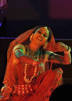 The 2nd and concluding day featured 8 items of dance which followed a report projected on the screen, of the institution's year-long activities and performances which was followed by the notable feature of the evening – an Odissi dance drama titled "Basudha." Although this presentation was studded by a set of experienced dancers of ODA, their efforts hardly got any meaningful support from either the lighting design or the back screen video projection. Adapted from Radhamohan Gadanayak's masterpiece 'Basudha' by Kedar Mishra, the piece was choreographed by Guru Aruna Mohanty with music by Sukanta Kundu and rhythm direction by Guru Dhaneswar Swain. While the dancing itself was adequate, it would have been useful if the subject matter of the dance drama could have been more firmly established in the understanding of the audience. The process of delineating the story line could have been greatly helped by the projected visuals on the cyclorama. But this did not happen to the extent desired since the heavy ground lighting of the fiberglass stage frequently enveloped the back screen with a haze, thus blurring the visual so painstakingly prepared. The initiatives and care taken by the ODA in using props like fiberglass stage and the cyclorama projection, is commendable. But such props need to be managed skillfully when used in tandem. If this had happened here, the full impact of the masterpiece 'Basudha' would have been experienced by the audience. Given the impressive cast of the dancers in this presentation, the most outstanding performance, albeit in a relatively small role, came from Madhusmita Mohanty (Dimple).
