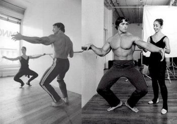 Arnie flexes his glutes at a ballet class