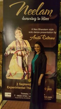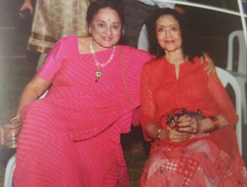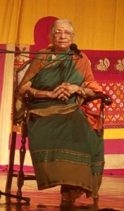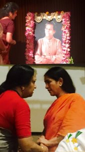 At condolence meeting for Guru MV Narasimhachari at Kalakshetra. Padma Subrahmanyam with Vasantalakshmi.