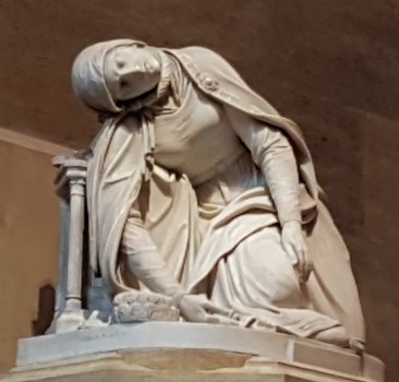 Virgin Mary swoons in a magnificent marble sculpture,