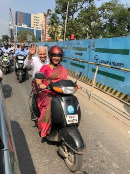 Sunil bhai riding pillion with Gayatri Krishnaveni Lakshmanan during Natya Kala Conference in Chennai. Pic of the season!