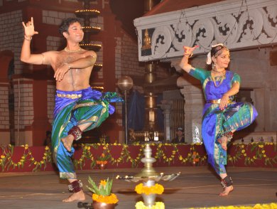 ![]() e-mail: leelakaverivenkat@gmail.com Nupur steps into its third decade Photos courtesy: Goa Kala Academy January 27, 2016 For ankle bells which have sounded for over two decades, Goa's annual Nupur festival spread over three days, marking its 21st consecutive celebration this year, had a modest audience gathering each evening. Carrying a certain aura pervading its performance site, in the precincts of Shree Mahalsa temple at Mardol in Goa, this festival mounted by Kala Academy Goa in association with the West Zone Cultural Centre, was conceived as a means of initiating, what popular perception sees as, a very western oriented people of Goa into the classical dance heritage of India. The event is now perhaps in need of a venue like the Kala Academy's own aesthetic premises by the sea, frequented by a cosmopolitan clientele. Also the travails of having to travel twenty odd kilometers from Panjam to Mardol for a festival which starting at about 7 o clock ends at nearly 11pm each evening, belies the purpose of the endeavour to reach out to the larger population. The temple grounds with the lit Dnyandeep in the rear bounded on by the temple (very distinctive architecture unlike any other region in India, sporting exquisite chandeliers hanging from the ceiling in the main entrance hall leading to the garbagriha) on one side and living premises for priests and visitors on the other, arguably makes for an attractive setting, the sound of puja bells and the drums heralding the evening haarti, suiting the ambiance of 'temple dances.' ![]() Sapna Naik and her students Selected with care, the artists featured were accomplished performers. But the curtain-raiser by Kala Academy's own product Sapna Naik and her students proved disappointing. Pushpanjali with an invocation to Ganapati in the lyric "Gajavadanabeduve" in Hamsadhwani, and the Tillana as group renditions offered a measure of clean Bharatanatyam lines. But Sapna's solo rendition of the varnam in Shanmukhapriya "Kolamayil Vahanane" fell short of expectations in both nritta tautness and in interpretative dance. Even the Meera Bhajan "Tumbin more kaun Khabarale' in Misra Hindolam lacked impact because of the dance's limited abhinaya. The organizers did not seem to insist on the time schedule for each artist being adhered to. In equipoise and being able to hold most challenging one-legged stances, and in rhythmic grasp, Kuchipudi dancer Yamini Reddy stands high. "Adenamma" in Paras, her father/guru Raja Reddy's piece-de-resistance, was rendered with élan by his daughter who brought to bear on what used to be statuesque masculine majesty, a quality of feminine energy. Introducing an effective contrast in tone was 'Sringaralahari' in Neelambari expounding the grace and allure of Rajarajeswari. An abridged rhythmic display on the brass plate in the Tarangam concluded the recital. Kaushalya Reddy's assertive nattuvangam led Ravikant's melodious vocal support with well tried Bhasker Rao's mridangam accompaniment and Shiva Krishna Swaroop's violin interventions. ![]() Yamini Reddy ![]() Rajendra Gangani Three artists on one day was one too many and by the time Kathak Guru Rajendra Gangani took the floor, it was nearing 10pm and he had to wind up with a few of his Jaipur gharana jewels as intra forms. The most striking was the Farmaishi composition, with 3, 4 and 5 chakkars, each rendered at a different speed concluding an avartan. Another was the changing placing of syllable 'dha' improvised in an interaction with the tablist Pt Kalinath Misra, the sawal/jawab sessions of Gangani answering the rhythmic challenges thrown by Kalinath Misra, demonstrating the laya control exercised by both dancer and percussionist, with tihais and tatkar providing inspiring flashes of improvisation. The homage to the Guru, in this case Rajendra's father Kundanlal Gangani "Malatilak manohar bano, Laya sir chat dhari, Gurubin aise kaun kare" was movingly reverent to the Guru. On the harmonium was Somnath Mishra and on sarangi was Sangeet Mishra. Right from the Alaripu in Sankeerna nadai with the Tiruppugarzh verses, visualized in a Kartikeya/peacock interaction with the bird becoming the vehicle of the deity, Janaki Rangarajan's impeccable araimandi, finished hand stretches and rhythmic exactitude with the typical sukhalasya and movements a la Padma Subrahmanyam (her Guru) punctuating the choreography, were evident. Janaki's depiction of the smitten nayika in the Vadivelu varnam in Todi "Mohalagiri konden Swamy", met with a very involved rendition. The nayika's all consuming love for Mannargudi Rajagopalaswamy, was depicted convincingly, though the sancharis woven round each musical statement tended to be one too many, sometimes looking repetitive. Janaki had the advantage of a soulful singer in Arun Gopinath, a fine mridangist in Karthikeyan Ramanathan and forceful nattuvangam support provided by Kaushik Champakesan. Flute melody by Jayaram completed the musical crew. "Kuru yadunandana," the ashtapadi of Jayadeva presented in the seated position right through communicated adequately, and she could have done away with the attempt in the introduction of translating the Geeta Govindam lines - which cannot avoid sounding commonplace robbing the work of its lilting poetry. After the 'haarti' ritual in the temple, the interrupted performance concluded with Vaidyanathan's Tillana in Poorvi. In common with the editing which dancers engage in today changing Bharatanatyam adavus, with an excess of lasya ridden Bharatanritta poses and movements, apart from not gelling with the linear geometry of Bharatanatyam, took away the Tillana identity of statuesque grandeur. ![]() Janaki Rangarajan ![]() Naadroop Shama Bhate presented her students in what was a well organized recital with quality musicians providing accompaniment, not always the case with Kathak performances. With evocative tablist Charudatta Phadke was the vocalist Hrishikesh Badve's singing- combining classical purity