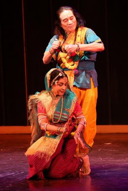 ![]() e-mail: leelakaverivenkat@gmail.com Experienced nayikas attract large turnout Photos courtesy: Shovana Narayan September 28, 2016 It was a strangely warming sight at the Habitat watching helpless organisers turning away throngs of people waiting outside, because of no vacant seat in the packed Stein auditorium! And this, wonder of wonders, for Lalit Arpan, the annual classical dance festival hosted by Kathak artist/teacher Shovana Narayan's institution! With a different theme each year, avoiding a feel of predictability, this event has allowed itself sufficient elasticity to respond to varying impulses. This year's choice of the Ashta Nayika theme based on Vidyapati's poetry, featuring senior, 'Padmashri awardees' only (made very clear in the introductions) certainly attracted a large turnout, particularly on the opening evening. Rasa as an intellectual perception calls for a deep mental culture an artist develops through years spent in the art form. So the selection of seniors was dictated by wisdom, and Vidyapati's poetry given its Jayadeva like bold sensuality in describing the sringar of the Radha/Krishna relationship, is hardly for the less mature performer though the Radha of Vidyapati, a parakeeya like Jayadeva's, is less brazen about her relationship with Krishna. Dhyanendra Tripathy in his impeccable Benarasi Hindi, as an alter ego of Vidyapati himself, entered the stage endorsing the sreshtajan to enjoy his poetry in Maithily, recapturing the ecstasy of the varying moods of sringar in Radha's relationship with Krishna. Then the two apsara sutradhars Bharatanatyam dancer Shalini Rao (from whose research work the poems were selected) and Kathak disciple of Shovana Narayan, Shivani Varma (who conceived the Vidyapati focus) introduced the nayikas starting with the vasakasajjika, wherein Radha adorning herself gets ready to assuage her love for Krishna. Jwala's sonorous voice heralds Shovana Narayan's entry as the vasakasajjika, representing a waiting maiden, now ready for love's fulfilment. Tribali tarangini pura duggama jaani Manmatha patra pathau As described by Manmatha to friend Krishna, Radha's fragrant sandal-pasted body is the shield, her love-filled sharp eyes and eyebrows are the bow and darting arrows, her earrings are the disc and her graceful swinging gait is like that of the majestic elephant as she is arriving "to duel in love" with Krishna. She is bound to be victorious, says Manmatha. Adorning herself for the awaited tryst, even as it rains (music in this part in Mianki Malhar) young Radha imagines the ecstasy to be shared with her beloved. Like the bee to the flower, she is drawn to Krishna. Shovana's interpretative part cleverly knit in nritta bits, the concluding fast footwork like a metaphor for the ecstatic culmination of love. ![]() Shovana Narayan ![]() Madhavi Mudgal Madhavi Mudgal's Odissi exposition as virahotkanthita Radha was in her usual vein - superbly neat and aesthetic with expressional subtlety - with well coordinated melodious musical accompaniment (composed by Madhup Mudgal and rendered by the Gandhava Mahavidyalaya crew). Ke patia lae jaeta re mora piyatama Hiya nahi sahae asaha paasa dukhha Re bhela Saona Masa Set to raga Desh, the dancer began with her separation pangs in the Sawan masa imagery of the singing cuckoo, the dancing peacock, all spelling the ideal ambiance for love. But, alas, Sreepati has failed to arrive and Radha desperately approaches creatures of Nature to act as love messenger by delivering her urgent letter to Krishna. In the second poem "Kathan bedana mohe...," Radha unable to bear the love pangs, confronts Manmatha for thwarting her with his arrows of love, perhaps mistaking her for Shiva. To disabuse him of his confusion - she draws attention to her flower decorated hairdo against Shiva's matted locks, her ornaments against Shiva's garland of snakes, her sandal pasted body so different from Shiva's ash- smeared one, and her forehead with vermilion mark as opposed to his third eye. Radha as swadhinabhartrika reigning over Krishna's heart with him rushing to fulfill every wish of hers had no poetic base as such, but was in the shape of a dialogue between the two. As presented by the Kuchipudi couple Vanashree and Jaya Rama Rao, in the eye to eye exchange between Radha and Krishna, even as Radha is wanting to boast to her friends about how Krishna wants to satisfy every whim of hers, the message remained indistinct - and the idea of a Krishna who is subservient to Radha did not come out. The nritta virtuosity rendered to a Hamsanandi Swati Tirunal composition "Shankara Sri Giri" with its Shiva accent, appeared somewhat out of context. Kuchipudi is so full of the Krishna theme and something more in tune with the Krishna emphasis would have been a better choice. ![]() Jaya Rama Rao & Vanashree ![]() Geeta Chandran Geeta Chandran's strong and expressive Bharatanatyam exposition of what was supposed to be kalahantarita nayika was, given the verses she performed to, khandita - the jilted Radha very clear in the text. To create the right context for the khandita portrayal, the dancer began with "Madhura madhura Brindavan Maja" portraying merriment in Brindavan, with Krishna frolicking with the Gopis. Aadha aadha madita bheladahu locana Bacana bolat aadh aadhe Rati aalasa samara tanu jhamara hei Purala mora sadhe In a slightly inebriated condition when Krishna staggers onto Radha's doorstep, jilted Radha demands that he go back to the woman he has been dallying with. Angrily Radha points to Krishna's body carrying the telltale marks of his flirtations - of the other's vermilion mark and her alta marks which have made his usual black heart look a different colour and this along with drooping eyes which speak aloud of sleeplessness. The concluding notes for the evening were in Hamsanandi, sung evocatively by Venkateshwaran, with Geeta's convincing dance interpretation. Vocalist Sudha Raghuraman's trilling voice rendering a Sans