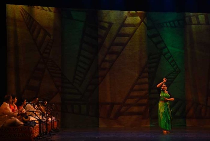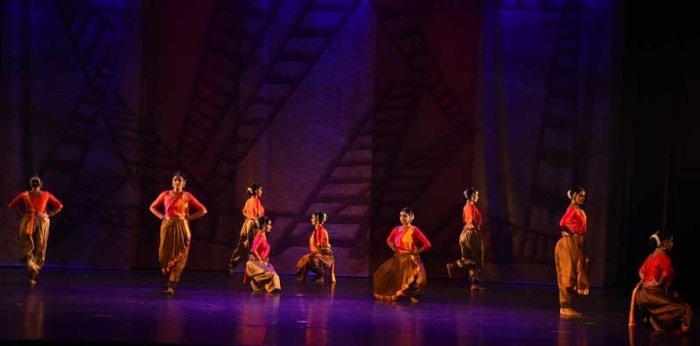 ![]() e-mail: leelakaverivenkat@gmail.com Anekanta provides exhilarating Bharatanatyam experience Photos: Sarabjit Singh Dhillon November 10, 2016 Woven round Jain philosophy of truth manifesting through multiple realities, Natya Vriksha's twenty-fifth anniversary, given founder Geeta Chandran's explorative creativity, became an exhilarating experience, for artists and audience - the performance at the packed Kamani auditorium in Delhi showcasing in a way, the elasticity of the Bharatanatyam technique in expressing off beat themes. What impressed was the overall package with the organisational details worked out meticulously. Inspired by the research of author Sudhamahi Regunathan, the two evenings could not have asked for a more fitting curtain-raiser than the scholar's own superb enunciation on the theme of Anekanta - of truth being relative, its entirety realised only by one who has attained that final state of consciousness ('Kaivalya'). Now more than ever perhaps the world needs to understand the wisdom enshrined in the philosophy that apparent contradictions are but manifestations of one ultimate harmony and that polarities can co-exist in perfect amity. ![]() Working with abstract themes can be challenging for an artist whose mind comprehends the inter-linkages between dance and other disciplines from poetry and ancient texts to handicrafts and aesthetics. Geeta's solo performance began with an analogy of the word and its meaning forming a whole, reinforced in a metaphor of Kalidasa's verse in Kumarasambhavam "Vaakartha-vivasampruktau vaakarthav-pratipattaye..." where the togetherness of Shiva and Parvati as one inseparable unity (Jagatah-pitarau vande Parvati Parameshwarau) is likened to the word and its sense. The dance with just a stretched hand, followed by a leg extension, with the entirety of the dancer, in stages appearing from behind the excellent backdrop of ladders at various angles designed by Manish Kansara, was assisted by imaginative music sans needless embellishment - a feature of the evening. That multi-dimensional truth has several facets was symbolised in Lavanyatvam where Geeta interpreted the same libretto line of Vyasaraya's Pada "Krishna nee begane baro" (calling out to Krishna) in three different situations of vatsalya (mother calling out to the child), sringara (beloved beckoning to the loved one) and bhakti (devotee calling out to the Lord). The Jaina Anekanta philosophy finds resonance in the Rig Vedic verse "Ekam sat viprah bahuda vadanti" which was expansively treated through metaphors in a varnam like format showing the same truth reflected and experienced in various ways - like the shared breath of the universe, water in different forms like rivers merging into the unified identity of the ocean, life cycle where the seed after sprouting and bearing flower and fruit gets back to the seed form, sugarcane growing in different areas carries the same quality of sweetness much like many religions seeking the same truth. Fleshing out a bare-bone line through substantial images was difficult and the musical scaffolding in ragamalika form composed by K. Venkateshwaran, Dr. S. Vasu and Radhika Kathal provided excellent support. Sharanya Chandran's nattuvangam support, mellow mridangam accompaniment by Sriganesh with R. Raghavendra Prasath and Rajat Prasanna respectively on violin and flute completed the team. The music ushered in the happy sounds of Bahar, and went on to Behag, Pantuvarali and Bilahari, with the charanam with solfa passages in Malhar, Durga, Hameer Kalyani and Vasant. ![]() For this critic the best of the evening came in Geeta's visualisation of Ravana - bold for a female dancer with Sandhya Raman's creative costume a great asset in helping create a feel of the character. Setting out fully decked, Ravana's eyes fall on Sita with every part of her so perfect that eyes falling on any one part remain riveted on that spot. "If only I could snatch her and carry her off like an eagle flying in the high skies away from all." Geeta's abhinaya captured this enraptured Ravana very well. Opposites co-exist complementing each other, and with its frozen attitudes and vivacious rhythm, the Tillana in Tilang through Bharatanatyam adavus symbolised this inter-relatedness of the world, reflected in the concluding line "Aakashaat patitam toyam yatha gachhati sagaram..." that just like the waters from the skies fall to join the sea, Anekanta shows the oneness amidst differences in this universe. If the first evening laid out the Anekanta philosophy in its essentials, through an interaction of Jainism considered "dry and severe" with the efflorescence of Bharatanatyam, the second evening in group form underlined the putting into practice this acceptance of layered multiple realities coexisting in harmony, for ultimate truth defying description is realised only by the enlightened one. What emerged was a thoroughly professional group of very finished dancers performing in perfect coordination. As an example of multiple interpretations of the one universal truth, the starting Alarippu in tisram was cast in three variations, the three groups of dancers performing their respective movement while moving in different directions crossing stage space with all coming together on the 'sama' or first beat of the metrical cycle. Well thought out, the choreography despite the different groups performing together never looked cluttered or disorderly. ![]() 'Maya' or illusion is one of the factors much discussed in Indian thought - between what is said and what remains unsaid (vyakta and avyakta), between the tangible and the intangible, between form and formlessness (saguna and nirguna) are unseen forces creating a mirage of ignorance. Very intelligently Geeta used the keertana of Muttuswamy Dikshitar "Maaye" in raga Tarangini as the textual framework for her group choreography, the devotee pleading with the supreme abstract energy, seeking release from the grip of illusion. The