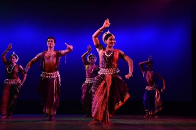 Mounted in Ravenshaw University of Cuttack (Odisha), The Kalinga Indonesia Dialogue, spearheaded by Ambassador Lalit Mansingh, President of the Kalinga Lanka Foundation, with sponsors like the ICCR, and the FICCI was a crackling three day exchange among high profile delegates led by the Ambassador of Indonesia in India, Rizali Wilmar Indrakesuma and several ex-ambassadors, professors, scholars and historians. Coinciding with the symbolic sailing of boats on Kartik Purnima during Bali Jatra, an annual event comprising a nostalgic recapture of past history begun in 1992-'93 in a re-enactment of historical maritime activity between Kalinga and Indonesia, with the INS Samudra sailing from Paradeep to Bali, to be followed by a seminar in Bali in 1993 with eminent Indian and Indonesian scholars participating, the recent dialogue was not meant to descend into a nostalgic recall of history, but to engage in a robust search for ways of activating strategic and economic interaction, which over the years through euphoric and less happy moments, has not lived up to its potential. Bhaba Sangama as the artistic representation for this interaction of India and Indonesia, saw Odissi and Balinese dancers in confluence. The Odissi dancers were from the Odissi Dance Academy at Bhubaneswar led by dancer Aruna Mohanty. The two very attractive Balinese dancers with names that spoke of the old Sanskrit heritage straight away were Dewa Ayu Eka Putri, dancer/ musician/ teacher at Cudamani Dance and Music Foundation and Ida Ayu Wayan Prihandari, dance and music teacher of Maha Bajra Sandhi Dance and Music Foundation. A fine visual on the back curtain of an ancient ornate large boat spoke of how the story of relationships began. There were also evocative visuals of Ravana Chhaya puppets, Puppets of Wayangkuli - though the technical side of projecting these was less than smooth - with jagged halts. The dance itself, with background research work done by Kedar Misra, very intelligently showed in bright snippets the cultural similarities between India and Bali through festivals, architecture, the shared approach to temple ritual and expressions of folk culture. The wise approach was to bring together folk influences and forms like Chhau instead of being bound by the strict confines of classical Odissi only. The obvious bond lay in the theme of the Ramayana, which our sea travellers took to so many regions outside, and in each area, the epic story has taken on a unique artistic cultural manifestation. It is to the credit of choreographer Aruna Mohanty that the dance forms from two regions, sharing a mindset though very different in technique, melded so smoothly. The Balinese dancer with her grace made a wonderful Sita at Ashoka-vana. A Chhau dancer who has been trained in Javanese dance played Ravana as depicted in their presentations, the grandeur of this character also brought out. The golden deer was another Indian dancer performing in Balinese style. Male dancers in Chhau movements were a pleasure to watch. The Choodamani Pradanam scene, Lanka being set on fire by Hanuman's torched tail, the Setu-bandhan by the army of monkeys enabling the crossing of the seas to Lanka, and the sensitive scene showing Sita going through the fire ordeal were all presented with finesse and exemplary movement coordination.