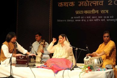 ![]() e-mail: leelakaverivenkat@gmail.com Kathak Mahotsav's re-look at old traditions and compositions Photos: Ashwani Chopra March 14, 2017 In a three day event based on traditional teacher to disciple lines, with their stylistic identities and signature compositions, this year's Kathak Kendra Mahotsav featured solo recitals, duets and group presentations, in that order each day. With her winsome stage presence, Nandita Puri, a prime disciple of Roshan Kumari, presented the uncompromisingly erect-bodied Kathak, with straight hand stretches, unrelieved by needless filigree-like minimal gestures of fingers or torso, in the severe style of her guru. Starting somewhat timidly with the "Shantakaram Bhujagashayanam" chant, the occasional missed chakkars and footwork in nritta, unable to articulate all the mnemonic syllables impeccably, revealed a lack of 'riyaz'. But after that she warmed up somewhat to compositions like the Chakradhar Paran, the 9 syllabic Chhand, the idiosyncratic grouping of syllables in "Makadi ki jaal" (spider's web) like travelling on a bumpy road, and the Kaliyamardan Kavit "Jamuna ki tat par." "Aavat mori galiyan me Giridhari", the abhinaya projection even with its simple word/gesture translation would have had more impact if the loud singer Vaibhav Mankar had been more in sur. The "moramukut manohar sohe" concluding in chakkars with two layers of the kurta unfurling like an inverted open parasol, made a fine visual picture. Anuradha Singh from the Raigarh gharana trained under late Kartik Maharaj and Pandit Ramlal, proved quite a surprise in her very competent nritta, with a very able tablist-cum-singer in Ustad Saleem Allahwale , with Zakir Hussein on the sarangi and Manoj Banrele on violin. But some of her explanations like the Jhoolan Paran (where one failed to feel the swinging gait of the jhoola in the way the 'bols' were placed), and another composition wherein she imagined the fish in water pounced upon and carried away by a swooping stork, while visualized from a very subjective perception, were nevertheless well executed. The hands emulating the flight of birds were communicative as was the portrayal of the lotus and bee that she visualized, in one composition. The footwork with jatis of 3,4,5,7 and 9 combinations were brought out with clarity. Anuradha presented no separate abhinaya item, but what she presented was correct and showed her to be in fine form. Strange that Kathak Kendra had noticed her after a gap of 30 years as she mentioned! ![]() Anuradha Singh ![]() Kum Kum Dhar Kum Kum Dhar of Lucknow, a familiar face for Kathak lovers, and one of the most reputed of Guru Lachhu Maharaj's disciples, starting with Shiva Vandana in jhap tala, and the kavits like Ardhanareeswar, a nritta composition wherein the bol arrangements suggested Ched-Chad, and Durga paran, brought out her guru's penchant for seeing arrangements of bols in various intra forms as ideas and images expressed thorough abhinaya. The composition based on the 'Dhanur Bhang' episode in the Ramayan, aside from the theme's overuse by dancers of all disciplines, making it well nigh impossible for introducing original ideas, needed better musical accompaniment. Just the singing with Rajiv Shukla's tabla, despite time and age having sapped the voice of the singer (no mean artist with a history of much valuable work done for dancers), would have sufficed, without the sitar which was totally out of sur and pitched on a level at total variance with the rest of the music. Amongst the dancing pairs, forming the highlight of the festival, were the two disciples of Nad-Roop of Pune trained by Shama Bhate (herself the product of training under Rohini Bhate and Mohanrao Kalyanpurkar) - Avani Kiran Gadre and Ameera Pathankar. Not often that a dancer can boast of such vocal support as Vinay Ramadasan provided, with the masterful parhant of Shama Bhate. Starting with the mellifluous alap in Bhatiyar, Avani Kiran's abounding grace, portraying the softer qualities of the goddess in the Devi Vandana in Mangalacharan was offset by the sheer tandav power of the goddess as brought out in Ameera's flagrantly strong presentation. As for the teental intra-forms, the two dancers flowed in the 'ta thai tat' group of rhythmic flourishes, in the parmelu, Kavit composed by Rohini Bhate and in the Dha Tilang group where one composition was patterned to include the tisra, chatusra, khanda grouping of bols. Chaturang set to music in raag Desh, a composition of Mohanrao Kalyanpurkar was the finale - all rendered to the fine tabla accompaniment of Charudutt Phadke, (the decibel level so soothing with every mnemonic sound heard with musical clarity), Prasad Rohan on sitar and Chinmay Kokhtar on the harmonium. Very stylish and confident, each dancer had her own qualities and the performance evoked high applause with its artistic interaction -'Samvad' and all round presentational expertise. ![]() Avani Kiran Gadre & Ameera Pathankar ; Courtesy: Kathak Kendra ![]() Malti Shyam & Shailaja Bisht Another very successful duet 'Dharohar' featured Malti Shyam and her present disciple Shailaja Bisht trained at Uttarakhand's Bhatkhande Sangeet Mahavidyalaya before coming under Guru Munna Shukla at the Kathak Kendra. Starting with every aspect of Krishna, so dear to devotees asking for a glimpse of the god who is the "rituvan naayak bahu sukha dayak" with mellow singer Santosh Kumar Sinha providing really tuneful music in Bhopali, accompanied by Aman Ali on tabla, Ghanashyam Sisodia on sarangi, Rohit Prasanna on flute and Yamika Mahesh providing parhant, the two dancers moved with excellent understanding in terms of how stage space was shared. Along with the impeccable ang, there is so much fluid grace in Malti's movements now. In the brief solo projection the tihais, and the springing cross-footed rhythmic arrangement were executed with silken ease. It is clear that Malti is now at the peak of her form. The nritta with parmelu, Ram Baan, 