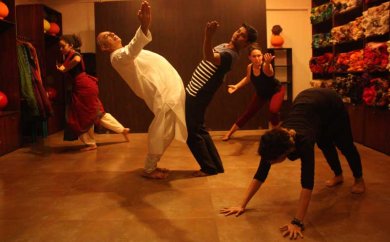 The performance part of the evening featured short individual projections by the participating students. Asha Rowland's presentation of Sahridaya was based on the Bharatanatyam technique performed to totally modern music in a contemporary statement. Western Contemporary dancer Melissa Pillarella from Israel presented a piece titled In the beginning (inspired by the child looking in fascination at its own hands) conveying impressions of body beginning to know itself exploring movement. Jahnavi Saisuresh, a Bharatanatyam dancer who went through Contemporary Dance training in an institution in the west, presented a unique coming together of the clear cut geometry of Bharatanatyam lines followed by the fluid curves and curls her torso went into - in a complementing body language of opposites. This critic was very impressed by the disciple of Salam Balak Trust, Shamsul, trained by Astad Deboo - the youngster showing himself as a thinking artist with clarity of purpose and ability to do his own work. With a puppet he himself had designed held in front of his face, Shamsul very cleverly made his hands from the back speak for it, his own face also appearing at the side after a while. The concluding part of the demonstrations saw all the young participants together, obeying Astad's instructions on moving, freezing, pairing or going separate, and it was wonderful to see how the very different movement styles shared performance space in a very congenial and visually intriguing manner. As Shirley observed, the entire effort was still at the stage of breaking ice, with the participants getting to know one another and interacting through their individual body techniques. Sense of group spacing was good. It is exciting to think of the kind of finished project that could eventually emerge from this group of young enthusiasts guided by the experienced teacher/choreographers. International Contemporary Dance Festival by Teamwork Fine Arts Society Mounted by Teamwork Fine Arts Society at the Shri Ram Centre auditorium, and curated by ardent votary of Contemporary Dance, Dr. Suresh Goel, the second consecutive celebration of Expressions, an International Contemporary Dance Festival, underlined the fact that it is not so much the technique, as the approach to the art form by the performer that really defines Contemporary Dance. Totally free in its mode of expression, Contemporary Dance comprises a personalized, individualistic approach, its movement vocabulary and ideas transcending boundaries of region, nation, or culture specificity. Many Indian Contemporary dancers as specialists whose base technique is acquired through training for years in a classical form, practice ways of getting out of strait- jacketed, prescribed grammar of specific types of movement, expressions and music, going beyond the boundaries of their art form to express themselves in different unique ways. In the rather warm lobby of SRC, Rukmini moderated a brief prelude of observations by a few contemporary dancers, art interested bureaucrats like Jawahar Sircar, dance impresarios, and activists, on the why of Contemporary Dance. One had no quarrel with any opinions expressed barring the one suggesting that since our rich five thousand (!) year old classical dance forms with their richness were still not part of the international performance art circuit, except as fringe art presentations, it was thought necessary to see if the same classical dances could shed the traditional repertoire, and be extended to provide really contemporary expressions, attracting larger audiences across the world - especially in the west. This approach shows a complex of having to live up to the Joneses. So what if some persons do not respond to our traditional dances? Is that reason to try and change our art to what they want? Change (and one had to laud what was presented by the Indian classical dance specialists) should be prompted by an inner urge and conviction - not a desire to earn plaudits from the world. Contemporary creations should ideally stem from a more convincing argument base than being undertaken to please a western audience. Does the world change the identity of Ballet to cater to Indian responses? Slide show Photos: Avinash Pasricha