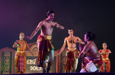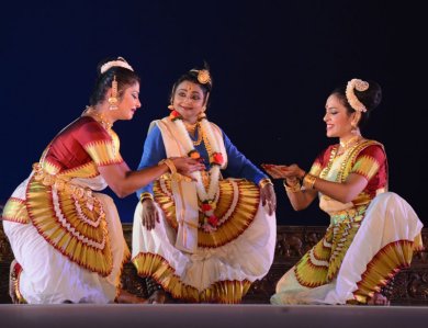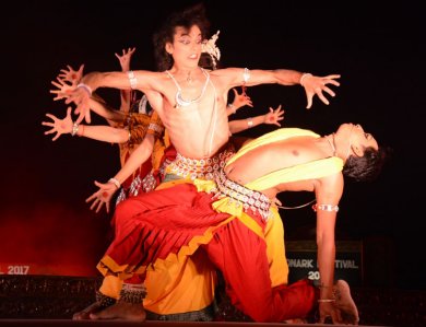 ![]() e-mail: leelakaverivenkat@gmail.com Living movements serenade frozen movements in Konark Photos courtesy: Odisha Tourism December 13, 2017 The crackling air of excitement all round the Konark township during the annual festival mounted jointly by the OTDC and Odisha SNA, would seem to show that far from evoking ennui, this event, over the years, is attracting larger audiences from all over. What with the Sand Art exhibition on Chandrabhaga beach involving voluntary participation from several foreign artists, a day time literary festival, the grand temple site with Puri also just an hour away by road and handloom exhibition, this week long fare projects a mini art world of Odisha. The Pipli lamps, road strewn with rangoli patterns, trees and plants lit up in myriad colours, and guest houses decorated with exotic lighting, add to the atmospherics. And every year sees something new - this time the nifty drone camera taking pictures for simultaneous DD Bharati broadcast replaces the intrusive long armed Doordarshan contraption which used to obstruct view in earlier years. The festival fare devoted one half of each evening to an Odissi group presentation, with a non-Odissi projection in the other half - all watched by a handsome turnout in the massive open air auditorium. Manmath Sambhav was the opening event by Nupur Dance Company by Niranjan Rout and group. Conceived by Nabakishor Misra whose libretto had music composition by Ramahari Das with Dhaneswar Swain contributing the rhythmic component, Niranjan Rout was the dance choreographer. Roopak Kumar Parida's vocal support with Sachhidananda Das' mardal provided the most sur-filled musical tones to start with - the complete tonic alignment in every percussion sound falling like manna to the ears - starting with the chanting like prayer to Shiva, much in the Odissi Chando pattern, followed by Shankarabharanam. But towards the latter half, music seemed to lose its tonic, with the female singer's He Jagadeeshwara very flat. The dance presentation relied for effect on the better male dancers who as Tarakaasura, Shiva and even Manmatha were convincing. Full of a powerful physicality in the dance visualisation, were the scenes of the high and mighty stride of a Tarakaasura or even Manmatha firing his pancha bana flowered darts (in raga Vasanth) trying to awaken the meditating Shiva (Jago Jago in Bageshwari), with Shiva's wakeful state eyeing Parvati with desire overcoming him, till wondering about a meditating Yogi falling into the trap of sringar he discovers the trick played by Manmatha and in seething anger the power of his third eye reduces the Love God to cinders. The dance composition seemed so weighted to suit masterful masculinity that not even in the Pallavi Tarijhum jhum Tarijhum did one experience that lavanya or sensuous grace, which is the hallmark of Odissi. The move of girls becoming the flames engulfing Manmatha was well conceived. But as the Bhairavi Moksha came at the end, one wondered about the kind of road Odissi was taking. And the costumes with Shiva in a garish red and blue could have been more subdued. ![]() Nupur Dance Company ![]() Temple of Fine Arts, Malaysia With 12 centres functioning in six countries, Malaysia's Temple of Fine Arts in Kuala Lumpur presented Bharatanatyam and the standard of the dancers trained under Shankar Kandasamy, was impressive, to say the least. Trim taut bodied dancers moved with finish, rendering the wise choice of Swati Tirunal's Bhavayani Raghuramam. Composed in the ragamalika format, the dance narrative built round the Ramayana epic easily communicated to the audience. Neat scenes without superfluous padding, with electric teermanams in different rhythmic gaits, linking up the episodic treatment, fetched the dancing warm applause from a discerning audience. The fly in the ointment was during the second half when the singing seemed to go off sruti. And this malady in the second half with instruments losing their tonic in the cold air and voices going haywire with the sound feedback creating confusion, was, for some reason, more or less, a feature of the five days. After Nattai, Natakruranji, Dhanyasi Mohanam being well sung, the latter half suffered with even the ending Madhyamawati not in tune. Pity because the dancers were flawless. Kathak by Nirupama Rajendra and Abhinava Dance Company from Bengaluru, in the opening Laya Laasya number where nritta through rhythm and bodily attitudes (helped by excellent parhant by Shivraj Natraj), communicated both the graceful and the forceful tones, creating a tremendous impact. Characterised by tasteful costumes, painstakingly trained dancers, immaculate footwork and performance space covered in neat formations, the worshipful mood of a Gham gham Ganapati was followed by the softly sensuous eye movements in a gator chali or movement reminiscent of a flight of birds with light footed chakkars and jumps, with the music scored by Praveen Rao changing from Hamsadhwani to Yamuna Kalyani. Rasalila, given a Gujarati aroma in costumes, showing Krishna after his Gopi ched- chad doing the disappearing act to teach the Gopis a lesson about giving up pride - and joining them only after even Radha has atoned, ended on a sublime note, which could have provided a perfect finish to the programme with music ending in Bhairavi after the Kalawati, Desh, Piloo. After this came the gap while the usual sound problems had to be tackled before Chaturang in Khamaj with Sahithya, Sargam, Bols and Tarana with the text built round the dance of Shiva and Parvathi was performed with aplomb with a tatkar, ending with claps where the audience was cleverly drawn into participation. What one appreciated in the programme was different talas of 12 matras, 14 matras and 16 matras being executed with finesse. The wrong move lay in Nirupama's stage appearance with a hand mike apologising to the audience for time taken to set right the sound balancing. Dancers need to be cautious abo