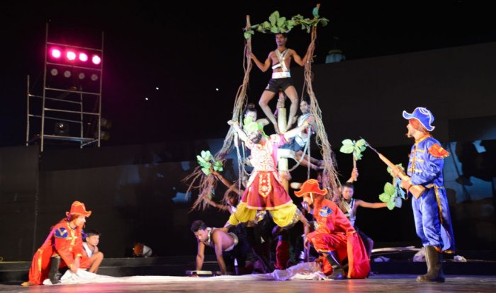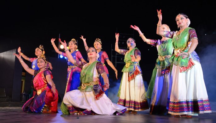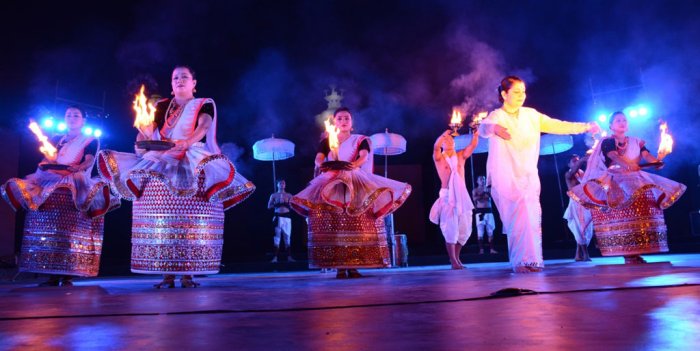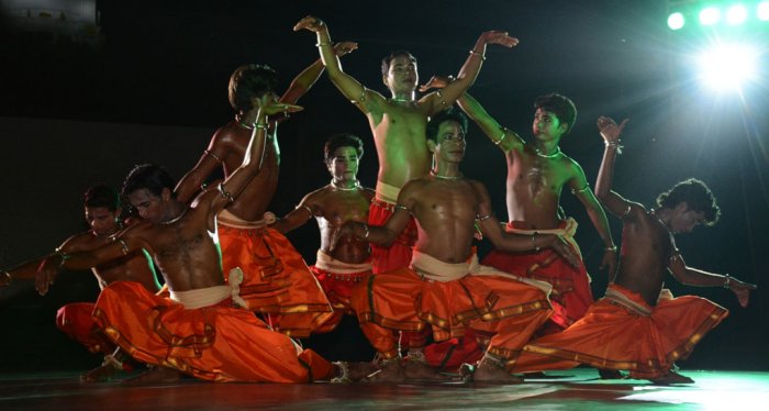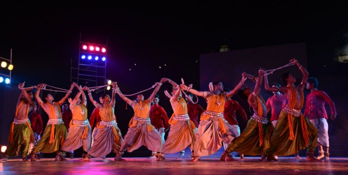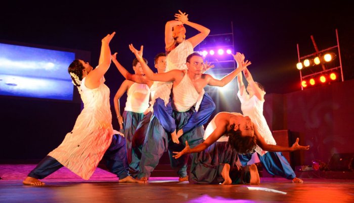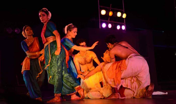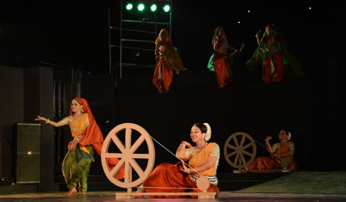 Aikyam - Invoking equipoise was the Contemporary Dance offer from Stem Dance Kampni led by Madhu Nataraj based in Bengaluru. While the dancers were well trained, their movements inspired by Kathak, Contemporary Dance technique, Yoga, Kalaripayattu, Thanga ta, folk/ritual dance, geometrical motifs and mime, all accompanied by Praveen Rao's music, the theme was to show that in a world polluted with animosity, the togetherness fostered by dharma, yoga, ahimsa and a live and let live respect for diversity alone could give man back his equipoise. The abstract notion of sacred geometry and moving from darkness to light, adharma to dharma and polarities getting united, as a concept is not easy to translate in movement terms. So barring a general idea of dancers showing equipoise in their movements, deciphering individual sections of the production was difficult. The Odissi representation in the festival featuring dancers of Odissi Dance Academy founded by late Guru Gangadhar Pradhan and now led by Aruna Mohanty was Ahimsa - an Ode to Gandhi. The script by Kedar Mishra, based on works of Narsi Meheto, Sumitra Nandan Pant, Harivansh Rai Bachchan, Radhamohan Garnik, was to catch the idea of Gandhi and the symbolism behind him rather than a biographical narrative. With an enormous cast, the dancers, trained to a finish (whether in Odissi, Gotipua or Chhau) moved in perfect discipline, suggesting Non-violence, Truth, Swadeshi, Swaraj and Self-Realisation - a feather in choreographer Aruna Mohanty's cap. Music was by Ram Hari and the nritta sequences were contributed by mardal expert Dhaneswar Swain. There were some starkly contrasting scenes as when on a higher level of the stage, waving the tricolour flags there are scenes of dancers rejoicing heralding India's Independence, while on a lower floor level, a weeping Gandhi moves among the corpses of persons slaughtered during Noakhali. This spectacular production for special days and as education for students in schools and colleges is wonderful. But for this critic that grace of classical Odissi and poetic subtlety of a Pallavi or an abhinaya item are missing. The music too, fitting the theme, has a heralding quality - away from the melting melody of Oriya geet. But for the painstaking and mammoth effort of creating a work, which is perhaps badly needed in today's world, the producers must be congratulated.