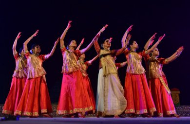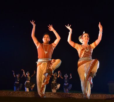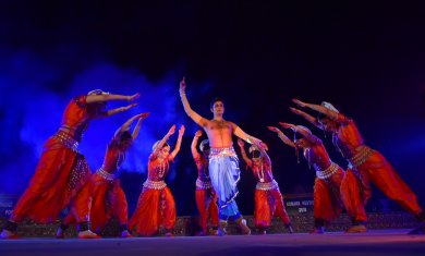 ![]() e-mail: leelakaverivenkat@gmail.com Dance sonnets to the sun god at Konark Photos courtesy: Odisha Tourism December 16, 2018 Standing in isolated grandeur is Odisha's Konark temple, a stone paean to the Sun God, its tower despite centuries of sea winds chipping away layers from the glorious surasundaris sculpted on its walls, raising a silent toast to the artistic genius of India's ancient sculptors. Konark is more than just a temple monument. Over the years, its image has become the identity of Odisha. This normally quiet township, beckoning tourists with its temple site and unspoilt beaches, turns into an activity hub during the week long annual dance festival mounted by the Odisha Tourism Department in association with the OTDC and Odisha Sangeet Natak Akademi, supported by Utkal University of Culture and the Kelucharan Sangeet Research Centre BBSR. The open air theatre, with galleried seating, with a massive stage on two tiers, with the top of the magnificent temple tower as backdrop a short distance away, is perhaps one of the most glorious performance spaces in India for dance groups. On one side as if, presiding over the festivities are installed the artistically crafted figures of Jagannath, Balabhadra and Subhadra at whose feet chief guests offer homage by lighting the ceremonial lamp every evening during the inauguration ceremony. The week offers more for those interested in a late night Jatra group presentation and of course the government sponsored Sand Festival on the beach, with foreign and Indian artists participating in creating images expressing a new theme every day. And with trees and roads, not to speak of government guest houses like the Pant Nivas colourfully lit, with the walk-up from the gate to the performance arena sporting the most artistic rangoli patterns, this government sponsored event, spares no effort in evoking the true feel of a carnival. A drone camera circling over the performance site, (replacing the long armed intrusive camera obstructing audience viewers previously) photographs proceedings for a simultaneous DD Bharati broadcast and here is one festival where State patronage, in intent, has not diluted over the years. Different dance traditions are presented, with special emphasis, justifiably, on Odissi which forms one half of the programme every evening. ![]() Nrutyayan Doing full justice as a curtain-raiser to this grand festival was the presentation by Durga Charan Ranbir's Nrutyayan group. The philosophical start with Shankaracharya's Nirvana Shatakam extolling the non-dual, formless, state of Chitananda roopam with the realisation that the Brahman is within oneself. Shivoham Shivoham (Shiva+aham) saw some of the most painstakingly organised group formations with well groomed dancers. The Debaprasad gharana, in its meditative minimalism, was diligently harnessed by Durga Charan Ranbir - the plethora of bhramaris, strong chauka, and yogasanas (particularly suited to the well balanced male body) rendered in rare unison by the male dancers with Rahul Acharya making a particularly convincing Krishna, and male costuming too showed a feel for aesthetics. The getup for the female dancers though, had too many loud colours clashing with the main white. The Keerwani Pallavi by Ramahari Das in Durga Charan's choreographic group images blossomed. The last item Samba Upakhyana had (as the opening 'Shivoham Shivoham'), scholar Nityananda Misra's researched libretto and music by Ramahari Das with Dhaneswar Swain contributing the nritta inputs. The episode is woven round Krishna's tempestuous son Samba born to Jambhavati. Trespassing into the privacy of Krishna's bed chamber when he was isolated with his main queens Rukmini and Satyabhama, Samba incites his father's curse to become a leper, till Narada's intervention of a cure comprising twelve years of deep meditation and prayer to Surya, rids him of the curse nursing him back to normalcy. The delicate sringar scene of Krishna with his eight principal queens, the meditating scene with difficult Hathayoga frozen stances, and the group images in final sonorous prayer and thanksgiving, abounding in frozen Surya images, ending with Moksha were incredibly well synchronised. The present trend is to burden the musical accompaniment with far too many participants - whereas a leaner team with fewer musicians can create more effective mood build-up, without too many interventions. Here too the lone female voice stepping in at a point was out of sruti. ![]() Rama Vaidyanathan & group Following on the heels of such a fine performance, Rama Vaidyanathan's Bharatanatyam group did not allow the evening to sag, the entire performance resting on excellent music, led by Sudha Raghuraman's flawlessly soaring vocal cords, moving with silken ease amidst octaves. To the strains of Rasikapriya, the breezy entry with Rama and her daughter Dakshina set the pace for Devi Stuti with the group of finished dancers appearing one behind the other. Tastefully simple, the orange costume with green blouse teamed with a minimum of jewellery, allowed group formations to stand out and to the beeja mantras 'Om aim hreem shreem', the Devi as Rudraroopini in the fiery glow (jwalamukhi) of her glory was brought out through movement dotted with dramatic freezes - the strongly executed movement passages, covering stage space. Sudha's involved, ecstatic singing in Gaula, in Surati, in Hamsanandi and finally Revati, with Vasudevan's nattuvangam verve, mridangam by Sumod Sreedharan and flute and violin by Raghuraman and Biju Anand respectively, provided excellent support. Rama has evolved her own style of group choreography, making an oft rendered Keertanam by Swati Tirunal, "Visweswara darshana kare chal man tum Kashi…" in Sindhu Bhairavi exhorting people to go to Kashi to see the Ganga and pay homage to Kashi Vishwanath, not look hackneyed. Spinning each segment into memorable images like Bhasma Anga Shiva in ash smeared glory accompanied by t