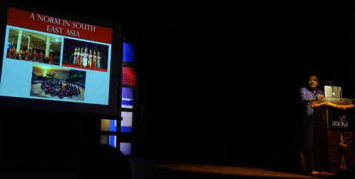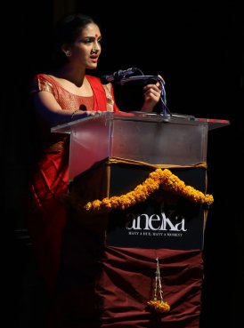 ![]() e-mail: leelakaverivenkat@gmail.com Concept to execution: ANEKA a clean winner Photos courtesy: Natya Kala Conference January 19, 2019 In both concept and execution of Sri Krishna Gana Sabha's 38th Natya Kala Conference titled Aneka, Dr. Srinidhi Chidambaram, convenor for the third successive year, has raised the bar of the event so high, that it is going to be a hard act to emulate for the successor who takes over the baton. Under three categories of Timeless, Transformative and Trending, Aneka became the umbrella covering in its daily deliberations, "the old and the new, the young and the old, the accepted and the problematic, the global and the local." TIMELESS ![]() Awards ![]() Mahati Kannan After conferring the 'Natya Kala Visaarada ha' on S. Janaki, Editor, Sruti, and Yagnaraman Award of Excellence on photographer Yoga, 'Timeless' began by taking us right back to the Natya Sastra with young Mahati Kannan, inheritor of the Padma Subrahmanyam legacy of scholarship and natyam, touching on 'Karanas Decoded'. After brief but precise introduction to the various components of a Karana, namely hastas, sthanaka and chari (with students of Nrityodaya demonstrating), Mahati pointed out how some of the Karanas could be seen in different dance forms even today like Lolita karana in Viparita Bhramari of Odissi, Janu Bhramari in Yakshagana, Ardharecitam in Mohiniattam etc. and above all the fact of how the Vrischika Karana and Kunchita Karana were part of dance in the South East Asian countries. She also mentioned that the Karanas found in the Java Prambanan temple were older than those found in Tanjavur. Mahati concluded on a note of excellent grace performing a solfa passage from Balamuralikrishna's varnam, the choreography comprising only Bhramaris as defined in the Natya Sastra. Dr. Sunil Kothari's screening of the film after a brief introduction 'Mrinalini Sarabhai -The Artist and her Art' produced by Yadavan Chandran and Mallika Sarabhai formed the 'Timeless' segment on day two. Very thoughtfully put together, with Tom Alter as narrator, the film combines excerpts from Mallika's own speeches, performances by Darpana students and Sunil Kothari's brief interventions. The film is about the journey of a legacy inherited from traditional gurus like Meenakshi Sundaram Pillai carried forward to include in its thematic repertoire contemporary concerns like dowry deaths and violence against women, revealing the artist's dissent against all isms. In this long and eventful journey, Mallika boldly experimented with sollukattu-s narrating the whole story without words. She made use of Kathakali (in which she was trained) sans make-up and all its rich aharya, reducing the dance to a 'level of absurdity' as Mallika says in the film, to reveal the inherent strength of the form, harnessing her ideas to themes like Manushya built round the entire life cycle of human beings, Tasher Desh based on Tagore's work, Meru Prarthana, Triangle where Bhaskara's mathematical puzzle became the inspiration for a production. ![]() Dr. Sunil Kothari ![]() Purva Dhanashree Typical of the Devadasi tradition was the evocative abhinaya in the Kasturi Ranga padam in Sahana "Aaradaani Janma ettina phalam emi ativaru vyartham Amma." Addressing a confidante, the artist bewails 'the worthlessness of this woman's janma.' What came out, with the dancer in the seated position interpreting the lyric, was the variety and intensity in mukhabhinaya and elaborations built round the musical statements. Earning handsome applause, some animated responses from the audience may have followed but for questions being totally disallowed in this instance, due to time constraints. Under Margam, Bharatanatyam's Timeless legacy, the Varnam projected as the central point of a recital was looked at from the point of its varied treatment in different schools. 'One Varnam, Many Banis' saw established artists Meenakshi Chittaranjan, Narthaki Nataraj and Urmila Sathyanarayanan bring out salient aspects of the Pandanallur, the Tanjavur and the Vazhuvoor Banis respectively, through the same varnam"Saami nine kori naanu ra" in ragamalika. But different parts of the varnam were taken up. Meenakshi Chittaranjan in the very direct and sans-frills word to gesture translation (particularly in the pointed soochi finger at the deity in 'Ninne' (emphasising You and You alone are the object of my love), in a highly stylised, restrained expression, punctuated with crisp, short jathis, providing the impact (an experience in précis writing as she put it) - highlighted the qualities of the Pandanallur school. ![]() Meenakshi Chittaranjan ![]() Narthaki Nataraj "Prema meeraga Tanjapuri vasa" in Pantuvarali and "Biranana nannenu kori ra Sri Brhadeeswara" as presented by Narthaki Nataraj was replete with symbolic imagery as references to the Kosala, Nayak dynasties, while visualising the Lord as Tanjapuri housed in the temple at Tanjavur. And the evocative sringar interpretation excelling in subtlety in abhinaya could have had few equals. Those delicate shoulder and torso genuflexions, along with the Jathi portions so typical of Kittappa Pillai underlined the minutiae of expression and movement pertaining to this school, absorbed through years of 'gurukula vasam' by this artist. Even weighed against the fast pace the charanam takes, and the fact that this varnam was choreographed for her by her guru K.J. Sarasa under T.S. Parthasarathy's guidance, one felt that Urmila Sathyanarayanan's rendition was too fast (though she was heard maintaining that she had only followed the kalapramanam already set) for nritta movements to be finished, smudging in the process, the full fledged Vazhuvoor identity from emerging. Sooraj Nambiar's demonstration of 'Netrabhinaya in Kutiyattam' made the unreal seem absolutely real like the baby deer drinking from the breast of a tigress and the other of the snake licking a mongoose! No matter how often one may have witnessed it, to see how the