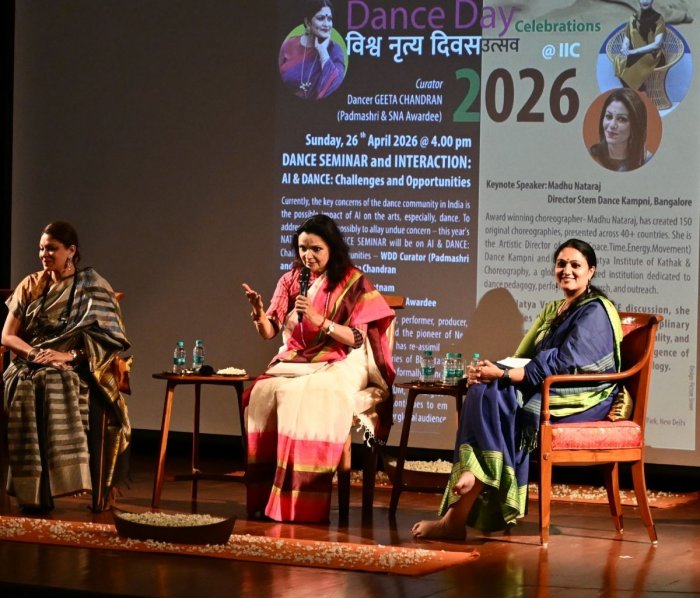 ANITA SAYS..... May 1, 2026 I dance because it feels like sunrise hitting my cheek Like floating on a river… Like I am in discussion with the universe - Broadway dancer AFRA HINES ![]() April has always been a packed month for the performing arts community. As Spring blooms in full splendour in some parts of the globe, temperatures soar in South Asia and hundreds of dancers and musicians from India are taking to the skies towards further shores. To teach, tour, perform and continue their creative journeys. Even while visa restrictions increase and travel costs soar, performers, especially dancers, remain resilient and hopeful. ATMA SHANTI WITH GRATITUDE Even before I begin my monthly musings, I wish to acknowledge the passing of two great cultural icons. Singer Asha Bhosle and photographer Raghu Rai. Both have dominated our visual and aural landscapes for generations. Ashaji brought mischief, desire and so much abhinaya to thousands of songs and prompted me to start my music group in college. Raghu Rai documented India's most seminal moments through his lens and the unforgettable 1986 INDIA TODAY cover feature on choreographer Chandralekha put her on the national map. As performers, music and photography are an integral part of our lives. Both icons were not directly connected to our dance world but who can forget the one and only HELEN and her fabulous performances to Ashaji's voice! And that emotional ghazal for Rekha in UMRAO JAAN. Spectacular! Throughout April, I was fortunate to watch and attend a variety of work - puppetry, dance, physical theatre, conference presentations, a book release- which left me grateful and full of enthusiasm with what is possible in India if we put our minds to raise the bar of curation and presentation. NATYA VRIKSHA WORLD DANCE DAY EDITION #19 ![]() With Geeta Chandran Kudos to curator and convenor Geeta Chandran for staying the course and creating an invaluable property that draws the New Delhi dancers and rasikas every year to this much awaited event. I remember the inaugural edition of WORLD DANCE DAY weekend with the late dance critic Shanta Serbjeet Singh. Over the nearly two decades, the WDD events, at the India International Centre, have featured so many of the greats in conversations and sharings. Meticulously curated and aesthetically presented, Geeta, along with husband and co-traveller Rajiv Chandran, have cultivated a warm and enthusiastic audience for this annual event. To bring more than 75 young dancers across disciplines for the morning workshops and a packed - sitting in the aisles - audience for the evening sessions is no small feat! I have watched the cross section of people who now consider this World Dance Day event as a 'must attend' weekend to gather, connect, watch, savour and respond to artistes, both on stage and off. The afternoon tea session is among the warmest and most jovial of moments. We gather around a crowded lawn at the IIC and share jokes (some unmentionable!) while gorging on the softest chocolate eclairs and kachoris (curated by foodie Rajiv Chandran). These are the moments that I "savour" in every sense. Being part of a community that deserves attention, recognition and praise for having the tenacity to confront the forces that are determined to devalue and dismiss the value of our presence. OF MOVEMENT AND IDEAS ![]() Surjit Nongmeikapam's workshop Photos: Sarabjit Singh Dhillon This year, the morning movement workshop YANGSHAK by contemporary dancer Surjit Nongmeikapam from Manipur, was flowing and insightful. Bringing his awareness of the spine and the body politic as informed by his native Manipur, Surjit coaxed the mostly classically trained dancers into allowing a controlled flow and awareness of the torso. From solo movements to group awareness was a transition that was achieved seamlessly. Even I tried out some of the ideas while sitting in my observer's chair. It felt liberating! Photos: Sarabjit Singh Dhillon The first afternoon featured Bharatanatyam senior Sucheta Chapekar and her granddaughter Sagarika in rare glimpses of her Marathi roots. Titled PRAVAAHITA, the dance pieces reminded us that Sucheta was the first artist of her generation, trained by hereditary guru Kittappa Pillai, to research and create an entire repertoire based on the 17th century writings of Tanjavur's Maratha ruler King Shahaji Raje Bhosle. To watch Sucheta-ji's gentle and evocative dancing brought back so many memories of her presence in Chennai decades earlier at the Sri Krishna Gana Sabha. ![]() AI panel with Madhu Nataraj & Sharanya Chandran Photo: Sarabjit Singh Dhillon The second day's discussion was focused on the future - ARTIFICIAL INTELLIGENCE and the challenges presented to Indian dance. With economist Sharanya Chandran and Tech dancer/ choreographer Madhu Nataraj on my panel, it was a lively triangulated conversation with visual excerpts of dance, Virtual reality, Augmented reality, AI and other emerging knowledge systems. The future is clear. AI has arrived and is not just an agent of chaos. It represents change at an unprecedented pace. There were some senior gurus who expressed concerns about AI's ethical issues. However, as Sharanya and Madhu stated, "AI presents an opportunity for Indian dance to seize and not shy away from." The session was an eye opener for many senior dancers and gurus and stimulated lively discussions afterwards. With women dominating the dance world, it is interesting to note that AI is being used by only 25% of women. AI presents opportunities to ease administrative bottlenecks while streamlining daily classes. Millennials and other independent dance artistes have already started using AI as dramaturg, choreographer, music generator, grant writer among other creative uses. As the moderator of the session, I quoted the 12th century Kannada Bhakti poet Basavanna O Lord of the meeting rivers (Siva) Those that will stand will fall That which is ever moving shall stay If the Indian dance worl