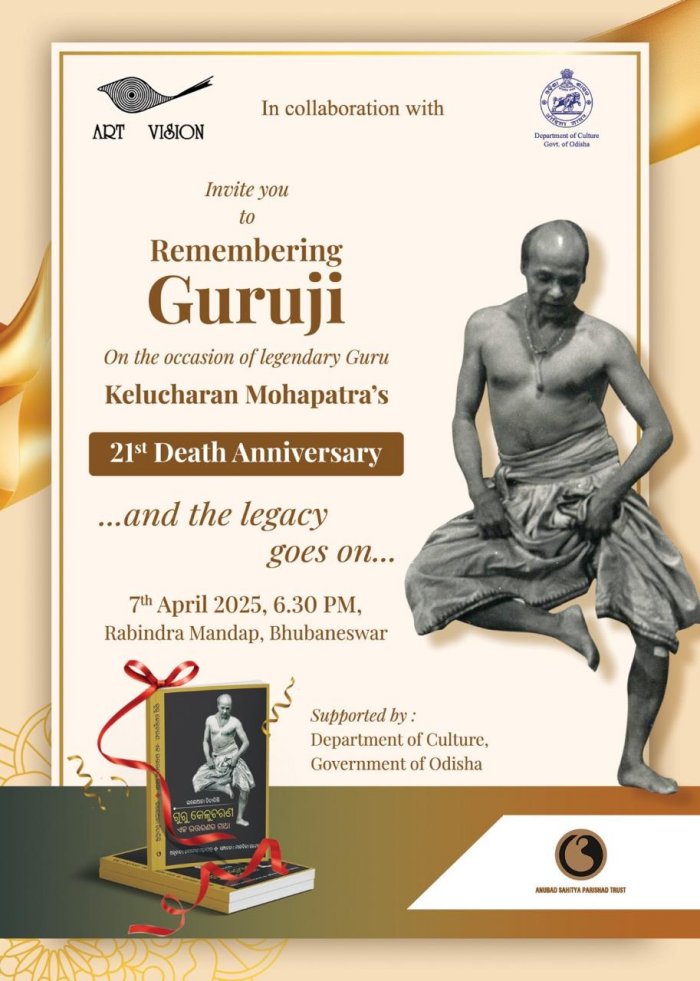 Art Vision presents Remembering Guruji Rabindra Mandap, 6.30pm April 7, 2025 Bhubaneswar March 28, 2025 Every year on this special day, Art Vision organizes tribute REMEMBERING GURUJI to commemorate the legendary Guru Kelucharan Mohapatra's death anniversary. The event brings together senior most students of the maestro perpetuating his legacy by dancing some of the iconic choreographies composed by him and by offering their own compositions. The Odia translation of the English book 'The making of a Guru; Kelucharan Mohapatra, his Life and Times' authored by Ileana Citaristi will be launched on this occasion. At: Rabindra Mandap, Bhubaneswar, 6.30pm Info: icitaris@gmail.com ![]() |