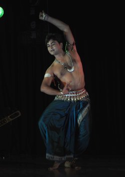 The Udayaraga Festival - Probal Gupta, Bangalore e-mail: probs_gupta12@yahoo.co.in Photos: Orissa Dance Academy April 7, 2011 The Udyaraga festival of Odissi 2011 conducted by Orissa Dance Academy under the leadership of Aruna Mohanty showcased immensely talented male Odissi dancers of which the state Odisha is presently blooming with, along with young talented female Odissi performers. 26th March commenced with three Odissi dancers - Pravat Kumar Swain (Bhubaneshwar), Shivali Pattanaik (USA) and Supriya Nayak (Delhi), all commencing their recital together with Mangalacharan in praise of Lord Ganesha - the remover of all obstacles. One must commend Aruna's beautiful idea of commencing the evening with the combination of two female dancers and a male Odissi performer. Pravat's entry was followed by the two girls in slow momentum with a swara followed by the traditional encomium to Lord Jagannatha "Jagannatha swami nayana patha gami…." The dancers moved in conscientious flow on the stage drawing various spectacular geometrical patterns. ![]() Shivali Pattanaik The first item of the evening 'Konark Kanti' was an apt beginning by Shivali. Odissi being influenced by the sculptures as engraved in the Konark temple, fine refinement in body postures is definitely required. Shivali's fine body structure was definitely an added advantage. Set to Raag Bhoopali and Shankarabaranam in eka taali, the item is a choreography of Late Guru Gangadhar Pradhan. The "dha kita dhat ta" swara displayed the sculptures in Konark playing various musical instruments. Shivali's zest brought out the required potential to execute such a brilliant choreography. "Ghumu Ghumu Ghungroo, dibi dibi…. nada bhyankara Shiva bhyankara" along with her neat footwork precisely matching the swara "thaka thai indta kara taka ta ham ta hata tai" with the graceful lilting of the upper torso continued shifting through an enchanting rhythmic phrase. The 'S' curve as created during the asymmetrical tribhangi position along with the beautiful permutation and combination of chowks and charis proved the dancer's grit on the minute nritta technicalities. The ashtapadi "Pashyati dishi dishi" with Radha pining for Krishna in his absence and longing to unite with the supreme soul, a beautiful choreography by Aruna Mohanty with Krishna being compared to Vishnu as Ananta Sayana during a sanchari needs subtlety in abhinaya. What the dancer needs to master is the internalization of mukhabhinaya, especially where Radha imagines Krishna kissing her in reverie and the bewilderment on her face as she comes out of her dream, pining for the supreme. ![]() Pravat Kumar Swain Pravat Kumar was by far the best in this series of Udayaraga festival. Demanding stage presence, neat and measured nritta and nritya aspect spoke of the dancer's virtuosity. Initially trained in the Gotipua tradition, the artist was later trained under the able guidance of Aruna Mohanty and has adapted and imbibed the best of the subtle nuances of the form as taught to him by his Guru. Tastefully costumed, "Varsha" the first item by Pravat, choreographed by Aruna spoke of the dancer's perseverance and diligence. The dark clouds of Varsha metaphorically represent the pangs of separation and the lovers yearning for their beloved. Usage of green costume was congruous to the season. "Drimi ta drimi taka drimi" rhythmic swara with the dancer's entry onto the proscenium, his masculinity merged aesthetically with his 'chala' or the lasya oriented torso movements with his hips remaining steady as his torso shifted. The sensuality as manifested in the 'S' curve of the asymmetrical tribhangi derived its higher quality on his masculine well defined body, providing an aesthetic visual appeal. Usage of onomatopoeia through the swara "ta dhri dhri…." concomitant to the sound of the rain, Pravat's archetypal movement typical to the dance of a peacock, beautiful gait of an elephant as used in sanchari by the choreographer whose grey dark body is compared to the dark tinge of the clouds. The "ta jhom ta tari jhom" swara depicting the lover's mating with perfect execution of the abhanga, chauk and tribhanga along with their artistic permutation and combination called for finesse. One must notice this dancer's head inclination at a perfect angle with his chin and the top of his head shifting equally to opposite sides from the top of the cervical spine and his continuous eye contact with the rasikas delineate perfection. However, the piece de resistance was the manifestation of Arjuna in three different roles… His swyamvara episode while marrying Draupadi, his role as Brihanalla (excellent execution) and the Kurukshetra, the Geetopadesham episode conceptualized and choreographed by Aruna Mohanty whose artistic brilliance in composing such a magnificent choreography and redefining the vocabulary of Odissi needs a standing ovation. One understands during the 'Bahirangam' session post the day of the program at the premises of Orissa Dance Academy, her creative zest and artistry in creating such a script with three literary stalwarts Kedar Mishra, Khirodh Pattanaik, Bijoy Kumar Jena and Ram Hari Das. Quick changing of his costume to suit the role of the pivoting character calls for Pravat's idea of aesthetics. Commencing with "Yada yada hi dharmasya glanir bhavati bharata" one must watch his "chira' with his legs gradually stretching diagonally opposite as adapted from the Gotipua to hit at the fish's eye. Minute choreography by Aruna and executing them with his own imaginative brilliance highlighted the overall effect. The Brihannala episode with usage of Hindi lyrics calls for the script writer's idea in language usage. The "ta jhom tari jhom" swara structured as Pallavi to emphasize Brihannala teaching dance, quick changing of roles with clear demarcated anga suddhi deserves applause. The denouement of the piece came with the Geetopadesham episode. Arjuna is reluctant to fight against his family m