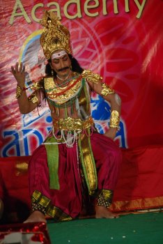 Kuchipudi celebrates - Sreelakshmy Govardhanan e-mail: shreelaxmy@yahoo.co.in April 23, 2011 Tanisha Yuva Utsav 2011 organized by the Akhila Bharata Kuchipudi Natya Kala Mandali, Kuchipudi, and Kuchipudi Art Academy, Chennai, from 14th to 21st of March 2011 at Kuchipudi Village was indeed a cultural extravaganza. Under the heedful eyes of Pasumarthy Keshav Prasad and Venkat Vempati, this 8 day long festival was held in the auspicious premises of Sri Ramalingeswara Temple. The festival was blessed with the presence of Guru Vedantam Satyanarayana Sarma for all the 8 days. His anecdotes on experiences and incidents from his glorious art life which he delivered each day left the audience spellbound. The cheerful presence of Vedantam Radheshyam throughout the festival was an added highlight. The festival witnessed some serious talents, some average performances and a few substandard performances as well. However, by the end of the festival what one would reckon for sure was the delightful air, replete with dance and music. The rest of it, who performed well and who did not, would've bothered no one. The festival held that magic! ![]() Akhila Takkallapalli, student of Guru Bala Kondala Rao commenced the festival with "Maha Ganapathim Manasa Smarami," an ideal beginning for the festival. The second performer of the inaugural day was the amazing talent from Bhubaneswar. Lingaraj Pradhan kept the audience spellbound throughout his Odissi performance. The Pallavi performed by him proved his hard work, sense of rhythm and an amazing control over body movements, while the choreographic piece on the life of Karna proved his authority in subtle abhinaya. Bharatanatyam dancer Vasanth Kiran from Bengaluru performed the Swathi Tirunal krithi "Bhavayami Raghu Ramam." The final performance of the day was "Baktha Prahlada," a Kuchipudi Yakshagana. Watching the ensemble, we realize how rich, vast and fascinating are the compositions and choreography of Yakshagana, the ancient dance-drama, authored, composed and choreographed by the illustrious souls of our great past. Executing it properly is a task in itself. Vedantam Venkatachalapathi, the promising artist from the traditional family of Kuchipudi proved truly eligible of his celebrated legacy and soared high to reach the steep expectations laid on him. He ruled the stage as Hiranyakashipu. Youngsters from the Kuchipudi village adorned the other roles of the natakam. As flag bearers to an age-old art form, they hold a huge responsibility on their shoulders that would require them to rise to fulfill a mighty task which demands tremendous dedication and hard work. Pasumarthy Rattaiah Sarma and Chinta Ravi Balakrishna acted as Sutradhars. It was amazing to watch the life and energy imparted by Pasumarthy Rattaiah Sarma to the drama through his singing, despite the frailty of his old age. The inaugural day indeed gifted the audience a rich slice of the diverse art forms of India. ![]() ![]() The second day of Tanisha Yuva Utsav commenced as a total celebration of dance from Dr. Meernanda Barthakur from Guwahati performing Sattriya. She had total control over the leaps, turns and postures she created. The final piece which portrayed the role of Yashoda trying to feed crying baby Krishna proved her ability to get into the soul of the character she played. In short, it was a genuine, emotive performance from Meernanda. The second performance was by students of Veena Murthy Vijay. Suhasini Shetty, Shama Krishna and Soorya Rao gave a neat performance representing Sri Rajarajeswari Kalaniketan Bengaluru. Among the three, remarkable was that of the youngest Suhasini Shetty who performed Brahmanjali and "Bala Kanakamaya chela" convincingly. Her feel for the art form oozed of grace throughout the performance. Shama Krishna performed a Purandaradas Kirtana in Tarangam format and Sandhya Tandavam. She had an arresting stage presence. Both items were choreographed in fast pace including Karanas and Charis. Soorya Rao performed a short version of Bhama Kalapam, indeed a beautiful looking Bhama. ![]() ![]() Mrutyunjaya, the youngest son of Pasumarthy Keshav Prasad presented Natesha Koutham followed by Annamacharya Krithi. His energy and enthusiasm was proof of his zeal when performing. The same excitement, however, made him a bit unsteady on his turns and postures amidst the rendition. The second day also had Soumya performing two items of Annamacharya and saint Thyagaraja. The next performances were by the students of Venkatachalapathi. Poojitha, the youngest participant of festival gave a neat performance and Ravali performed "Samaravaram Devam." Venkatachalapathi ended the program with Adhyatma Ramayana Kirtanam that depicts "Sita Apaharanam." The third day of the festival started with the prelims of the documentary made by Dulam Satyanarayana based on life of Vedantam Satyanarayana Sarma. The first performance of the day was by Samskriti Chatterjee from Mumbai. The artiste began the recital with "Gaja Vadana beduve" and ended with Tarangam. She was at her best in the Ashtapadi. If the artiste had imparted more energy into the performance that would have added an extra charm as she is already blessed with a graceful face. Koka Vijayalakshmy and her team presented items based on the poems of the great poet Srirangam Srinivas Rao. Giving visual interpretation to Sri Sri's poems was an appreciable effort. The next performance was by the students of Pasumarthy Srinivas. Pasumarthy Pavithra and Thotta Venketa Nirmala gave a fairly neat presentation. But one who stole the show was Pasumarthy Pavani for her beautiful rendition of the songs, especially the way she sang Kalinga Narthanam. The highlight of 16th of March was by none other than the maestro in Karnataka Eka Vyakthi Yakhshagana, Mandap Prabhakar. His skill in abhinaya appeals to connoisseurs and laymen alike. He was an embodiment of acting skills. Improvisation and the use of the stage as well as its 'premises' was wat