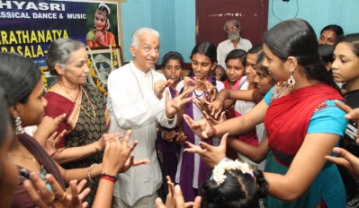 A tireless action stretches its hands towards perfection - Prof. CP Unnikrishnan e-mail: bharathamuni@gmail.com April 30, 2011 Prof. Vilasini, the pioneer among the propagators of the Kalakshetra style of Bharatanatyam in the State of Kerala enters her 60th year of untiring efforts for the cause of this classical art form. Being the first prize winner of Bharatanatyam in the erstwhile Kerala University Youth Festival, she was the one and only artiste selected by the Government of Kerala and deputed to Kalakshetra in Chennai in 1958 to get trained under the great dancer Rukmini Devi Arundale. It was to bring the true style and spirit of this art form to our state. It was after appointing her as a Bharatanatyam teacher in RLV College of Music and Institute of Fine Arts, Thrippunithura, an institution established to cherish and propagate various art forms in Kerala, under royal patronage. After her 37 years of commendable service there, when she retired as the Head of the Department of Bharatanatyam in 1995, Kerala Sangeetha Nataka Academy honoured her with its award for that year in consideration of her valuable contributions to the field of dance. She established a dance school Nrithyasri in 1972 annexed to her house, for providing advanced training in Bharatanatyam under gurukula form of teaching. At present, she is working as the senior instructor in Bharatanatyam at Sree Chithira Thirunal Smaraka Sangeetha Natya Kala Kendram, Thiruvananthapuram, and Noopura Institute of Indian Classical Dances at Poojappura. Her husband PS Muraleedharan Nair, Rtd. Marketing Manager of the Kerala State Marketing Federation was the driving force behind her success. The couple has two daughters Shylaja M Nair and Sunitha M Nair; both of them were Kalathilakams of Mahatma Gandhi University Youth Festival from 1987 to 1989 and have participated in dance presentations in Festival of India at erstwhile USSR representing India in 1987. They are presently working in Indian schools at Al Ghubra and Wadi Kabir in Muscat, Shylaja as Maths teacher and Sunitha as dance teacher. In 2002, Sunitha established the second annex of Nrithyasri Institute of Classical Dance & Music at Thekkekkuttu Buildings, Kanjikkuzhy at Kottayam. Kalakshetra Vilasini has striven to impart the true Kalakshetra style of Bharatanatyam to the dance artistes of Kerala by way of an intensive training for nine days, through an effective workshop at Kottayam. The opening ceremony of the Bharatanatyam Shilpashala 2011 was conducted at DC Books Auditorium, Kottayam, on 16th April 2011. Anupama Mohan (cine actress and Kuchipudi dancer) along with her husband Mohan (cine director) inaugurated the workshop. VN Vasavan, MLA, presided over the meeting and Thilakan (cine actor and dramatist) was the chief guest for the function. Felicitations were given by Thiruvizha Jayasankar and Adv. K Suresh Kurup (Ex MP). PS Muraleedharan Nair, Director Nrithyasri, delivered the vote of thanks. It was followed by two lecture demonstrations on dance by Dr. C Venugopalan Nair (Head of the department of Bharatanatyam, Sree Sankara Sanskrit University, Kalady) and Sreedevi Rajan (Mohiniattam guru). The event witnessed the honoring of eminent senior artists of the district like Thiruvizha Jayasankar (nagaswaram), Pallom Madhavan (Kathakali music), Kuroor Vasudevan Namboodiri (Kathakali), Kudamaloor Appukkuttan (Sapthakalasangamam), Amayannoor Damodara Kurup (panchavadyam), Kumara Kerala Varma, TK Rugmini Nair, Ponkunnam Ramachandran, Kottayam Veeramani and Mathangi Sathyamoorthi (Carnatic Music), Alappy Renganath (music direction), Kalamandalam Gopinath (dance) by hon'ble Justice KT Thomas (former Judge of the Supreme Court of India). From the next day, there was practical training right from the basic steps to adavus, which was given by Deepthi Parol (a disciple of Guru VP Dhananjayan) and Haritha (1st rank holder in Post Diploma in Bharatanatyam from Chennai Kalakshetra) for 2 hours each in the morning and evening sessions. Every day, there were interactive sessions on various subjects led by eminent artistes and gurus from dance and connected fields like Adyar Lakshman (on Kalakshetra style of Bharatanatyam and nattuvangum), Thiruvizha Jayasankar (on thalam in classical music and dance), Nandankodu Vinayachandran (on bhavams in various forms of classical dances), Changanassery Madhavan Namboodiri (on ragas to create bhavas in dance), Dr. CP Unnikrishnan (on Natya Shastra), G Venu and Nirmala Panicker (exponents in Koodiyattam and Mohiniattam). All the students were trained by Deepthi Parol to perform Natyanjali, an invocatory item choreographed by VP Dhananjayan and a Thillana set to Ragam Hindolam by Haritha. Out of the 30 participants in the workshop, 16 were selected to do 'Goureesankaram,' a dance drama depicting the stories of Lord Shiva, choreographed by Vilasini. ![]() ![]() The workshop came to an end with the lecture demonstrations delivered by the Dhananjayans on 24th April at the auditorium of Hotel Mali International. Both VP Dhananjayan and Shanta Dhananjayan together perfected the performance of Natyanjali by the participants. Also there was an interactive session in which they answered all questions put forward by the participants. Dhananjayan inaugurated the valedictory function held at Sivasakthi Auditorium in front of Thirunakkara Mahadeva Temple, Kottayam. VN Vasavan, MLA, presided over the function. The chimes of the temple bells made the function more auspicious when Dhananjayan opened his speech by requesting the MLA to take every endeavor to honor Kalakshetra Vilasini who has toiled much for the propagation of Kalakshetra style of Bharatanatyam in the State of Kerala for six decades. The keynote address was delivered by Dr. J Prasad (Vice Chancellor, Sree Sankaracharya Sanskrit University, Kalady) who is holding the charge of the Vice Chancellor of Kerala Kalamandalam Deemed University also. The Dhananjayans were honored by Vilasini and her husb
