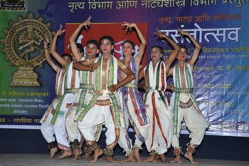 Vasanthotsav May 9, 2011 The newly formed department of dance in collaboration with department of dramatics, Dr Babasaheb Ambedkar Marathawada University, Aurangabad, concluded its first Vasanthotsav festival of dance, drama and music in April this year. The festival performance is part of the curriculum and syllabus based, and around 30 students of BA (Dance) and BPA (Drama) presented Bharatanatyam, music recital and three one act plays in the two day festival held on 21st and 22nd April 2011. The opening of the festival was with Ganesh Shlokam followed by Pushpanjali in Gambeera Natai Ragam, Tisra Alarippu, Mallari and Shiva Stuti and Shabdam in ragamalika on the first day and the second day saw demonstration of adavus and different facets of technique of Bharatanatyam by all the students. ![]() ![]() ![]() ![]() The second segment of the festival was vocal music and the students sang ragas, abhangs, bhajans and also ghazals. The third segment of the festival was folk dances of Maharashtra followed by three one act plays directed by third year students of BPA on both the days. The dignitaries present on both days were Dr Kanak Rele, Director, Nalanda Dance Research Centre, Mumbai, who inaugurated the festival, Vice-Chancellor Dr. Vijaykumar Pandharipande, Dr Babasaheb Ambedkar Marathawada University, Aurangabad, Chief Secretary Dr. Manavendra Kochale, Dr. Shivaji Sangle, Head of the Dramatics Dept., and Prof. Dr. Shashikant Barhanpurkar. The coordinator of the dance department and festival was Prof. Dr. Jayant Shevtekar. The faculty involved in training and preparing the students for the festival were V Soumyasree ( Bharatanatyam), Dr. Smita Pandhare and Sachin Nevpurkar (music), Smita Sable, Vaishali Bodele, Ashok Bangar, Gajanan Dandge (drama). The special thing about the whole festival is that the students belong to rural and interior areas of Marathawada region in Maharashtra and they are not exposed to any performing arts. To prepare them in this one year and present them was a herculean task and the department of dance succeeded as the performances were appreciated by one and all not only for presentation but for authenticity and perfection. |