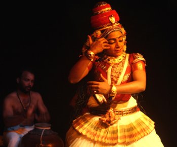 Parvati Viraham in Nangiar Koothu May 29, 2011 Parvati Viraham is a dialogue between Shiva and Parvati that ultimately ends up as a love quarrel and is one of the greatest moments of abhinaya in Koodiyattam Sanskrit theatre. ![]() Kapila performing Parvati Viraham In this, the same actor enacting the characters of Shiva as well as Parvati is an example of Pakarnattam, impersonating both the male and female characters alternatively. To shift thus between the male and female characteristics, the actor needs to empty himself / herself. The mind has to become transparent. Only if the actor is able to achieve such a state of mind will the transformation in Pakarnattam take place. Parvati Viraham is a portion that gives an opportunity for experiencing the theory of acting. "Yatho drishtisthatho mana" (where the eye rests, there the mind reaches) to its fullest degree is possible. Sringara when Parvati gazes at Shiva's face, jealousy when she happens to glance at Shiva's head that houses Ganga, then anger as her gaze moves down in a process of thinking, that turns into sadness - thus, the movement of the eye transforms into the sthayi and sanchari bhavas. The whole episode which is based on a single anonymous sloka "mauloukinnu mahesa" composed centuries ago is now becoming part of Nangiar Koothu repertoire. The play produced at the Abhinaya Kalari (Acting Laboratory) of Natanakairali is enacted by Kapila Venu. The premiere of the performance was held on May 27, 2011 at the 34th National Convention of SPIC MACAY at Ravenshaw University, Cuttack. Kalamandalam Rajeev, Kalamandalam Hariharan and Kalanilayam Unnikrishnan provided percussion accompaniment to the performance. Eminent dance critic Leela Venkataraman introduced the performance. Ustad Bahauddin Dagar (exponent of rudra veena) felicitated the artistes. |