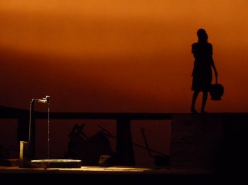 Where time stood still! - Veena Basavarajaiah, Bangalore e-mail: veenabasavarajaiah@gmail.com Photos: Sankar Venkateshwaran July 13, 2011 A monstrous heap of old clothes and junk sleeps on stage right with a broken bicycle as its crown. A square platform in the centre houses a water station (neerina niluthana) and the sound of the running tap stampedes into the silence. On a narrow footpath that emerges from the back-wing stands the anchored silhouette of a girl holding a basket. Nothing changes for the next few minutes and miraculously the girl is seen rooted a few feet away from where she started. She stops to look back, to trace her journey that began a few silent years ago and unhurriedly eyes the water. With calculated breath, she steps towards the tap, kneels down to take a rouge mug out of her basket to fill it and gulps it down her throat hectically. She resumes back to her sluggish self while two back-packers are seen taking the same path as hers. She walks to settle herself on the mass of clothes and scans the unkempt looking travelers who assume a plodding pace with the same longing to quench their thirst. While their lips meet unexpectedly trying to drink water directly from the tap, a mere moment in reality seemed to stretch endlessly under her surveillance. The two strangers depart and as they leave, their shadows leave first, followed by their bodies and then the light. ![]() ![]() Nameless visitors continue to transform the space into an integral part of their personal narratives leaving the audience to imagine their past and future. Incidents of an old lady taking her last breath, men taking away her corpse, lovers romancing, a soldier brushing his teeth , a man dressed in bathrobe taking a dip, an eccentric woman wishing to fly away with an open umbrella are all done with a deliberate down-tempo. The skin deep emotion evaporates during the slow-moving actions leaving behind a visceral residue. The attention zooms to track every actor’s movements, magnifying every step, the tension in the muscles, the taut spine, the held neck, the placed weight and the breath. Time comes a full circle when the silhouette of the girl with a basket who commenced the piece repeats her journey. She dissolves into darkness and the viewer is left with the eternal sound trickling down the tap. A Kannada adaption of Japanese dramaturg Ota Shogo's ‘The Water Station’ was presented by Ninasam Thirugaata, the renowned theatre company from Heggodu, Karnataka. The performance was staged on the 3rd and 4th of May 2011 at Ranga Shankara, Bangalore. Director Sankar Venkateshwaran’s training in four major Asian traditional theatre forms including Noh, Koodiyattam, Beijing opera and Wayang Wong brings uniqueness to the treatment of the entire movement performance. For a hare-paced city dweller, this tortoise piece of work that can easily be represented in 20 minutes is stretched to a good two hours challenging the audience's attention and perception. In today’s world where no one has the time to stop and smell the roses, director Venkateswaran slows down life for us to take time to appreciate its beauty. Ninasam a cultural organisation started in 1980, offers a 10-month long diploma course to about 20 students every year. Some of the alumni of this institute join Ninasam's rural theatre repertory troupe, Tirugata - a self sustaining group that has travelled extensively across the country. Some of the best of Kannada theatre artistes hail from Ninasam. Veena Basavarajaiah is a Bangalore based solo dancer and choreographer who is trained in Bharatanatyam, Kalaripayattu, Ballet and Contemporary dance. She has worked with Shobana Jeyasingh Dance Company, Angika Dance Company, Attakkalari, Kalari Academy, Gati Forum, Nritarutya, Natyantharanga & Yana Lewis Dance Co. She has performed on various platforms across India, UK and Europe. She is the recipient of Special Mention Young Achievers Award in 2007 and also a paneled artist of the Indian council for Cultural relations. |