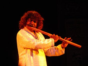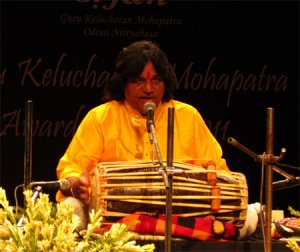 The 17th edition of Guru Kelucharan Mohapatra Award Festival Text & pics: Lalitha Venkat, Chennai e-mail: lalvenkat@yahoo.com September 18, 2011 It was a rainy afternoon on September 7, but the evening fortunately turned out to be clear so the expected full house gathered at Rabindra Mandap for the inauguration of the 17th edition of the Guru Kelucharan Mohapatra Award Festival in Bhubaneswar. The driveway was flanked by photos of the Guru on one side (by Avinash Pasricha and from Srjan archives) and photos of the festival performers on the other. The stage designed and constructed by Kirti Kishore Moharana, was like a mandap with 2 evocative images of Guru Kelucharan Mohapatra on either side that looked as if he was appreciating the artistes performing on stage! Shri Murlidhar Chandrakant Bhandare, the charming Governor of Orissa, inaugurated the festival. He said he was very happy to be the chief guest since he has been following the festival since its inception in 1995. “What started as a one day festival has now grown into a 5 day fest that aims to preserve and promote our classical dance and music. I am impressed with the ambience and the artistes who mesmerize with their performances. Kelucharan Mohapatra’s contribution to dance made him a legend in his lifetime. I never missed any of his performances and the memories are still fresh in my mind. I will always be spellbound by his rhythm and composition. His every move came from the heart. It’s rightly said that dance was his sadhana and teaching was his dharma. It is because of gurus like him that Odissi has become so popular today. It is most heartening that even our small children are dancing so magnificently. Hard work and dedication will make them great artistes. Different music and dance forms are our national treasures. Music and dance unite India. Let the GKMA Festival be a trendsetter,” said the Governor to thunderous applause. The fest got off to a melodious start with Pravin Godkhindi’s flute recital. He was invited to perform at GKMA Festival when Godkhindi and Ratikant Mohapatra were both featured earlier at a festival in Karnataka. It was a dramatic intro as muted light fell on Pravin Godkhindi’s curly locks, and on hearing the first strains of the flute, there was a cheery applause. “Vaathapi Ganapathim” in raag Hamsadhwani that is popular in both Carnatic and Hindustani styles was followed by a bandish in theen taal. ‘Midnight trek’ in raag Malkauns, a number from his jugalbandhi with saxophone maestro Kadri Gopalnath a few years ago, combined shades of western music, jazz and some folk elements too. Some passages were an exercise in supreme breath control and the audience asked for an encore! Krishna is the name of his fusion band and the composition in raag Bhoopali was also titled ‘Krishna.’ The audience was invited to say ‘Krishna’ at appropriate moments and the end of the piece had the sporty Bhubaneswar audience clapping in tune. Godkhindi ended his recital dramatically by yelling ‘Krishna’ with his hands held aloft. He got a standing ovation. Flamboyant, yet not going overboard, Pravin Godkhindi stood while playing the flute, even moving a little bit around the stage. He was accompanied by his brother Kiran Godkhindi on tabla, Umesh on keyboard and Padmanabh Kamat on octopad.