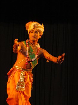 The Kathak performance by Murali Mohan Kalva (director of Nadam ensemble) and Tushar Bhatt from Bangalore was scintillating and energetic with nothing overdone - just the right measure of chakkars and a short interlude of pure Kathak. Murali and Tushar both presented a solo on Shiva – “Nataraja kshitiraja” and Shiva tandava stotra respectively. The duo’s pure dance technical piece started from vilambit and progressed to a fast pace. In “Hari tum haro,” Tushar depicted the story of Prahlada, with scope for abhinaya, especially in the scene where Hiranyakashipu is killed! Murali Mohan closed the presentation with a Ram bhajan “Kabhi kabhi bhagwan ko bi bhakton se kaam pade” in which Rama, Lakshmana and Sita ask the boatman Kevat to ferry them across when in exile. With his touch, Rama transforms Ahalya from stone to a mortal again. What would happen then if Rama treads on his boat, his only means of livelihood? Murali’s adept changing into characters was hugely enjoyed by the audience. His slick announcements touched with humour, the wonderful costumes that were changed for the different items and the overall aesthetics made it a treat to watch them. The final day started with a serene solo Manipuri dance recital by Sinam Basu Singh from Imphal, Manipur. He is a disciple of gurus Y Hemanta Kumar, N Tiken Singh and W Lokendrajeet Singh. He started with a guru vandana to the trimurti of Brahma, Vishnu and Maheshwara. Nritta prabanda depicted pure dance movements. In the lasya item Radha Abhisar, we see Radha adorning herself, making up her face, braiding her hair, wearing bangles, all for Krishna. In the Jayadeva ashtapadi “Haririha mugdhavadhu nikare” we see the sakhi report to Radha about how Krishna adorns himself delicately with ornaments and sandal powder to flirt with Chandravali. In a small costume change, the sash turned from white to green and the head dress from saffron to white. Khandita ashtapadi had a combination of tandava and lasya. Struck by Cupid’s arrows, Radha waits the whole night for Krishna, who appears in the morning with apologetic words. Sinam concluded his recital with Jayadeva’s “Pralaya payodhi jale…” on the dasavatara. Not only is it rare to see Manipuri performed in Chennai, it is rarer to see a Manipuri solo, especially by a male dancer, so the serene countenance, the beautiful fluid movements, ebbing and flowing of the fingers and arms and the many turns made it indeed a sweet performance to watch. The costume was also very pleasant and the jewellery simple and minimal.