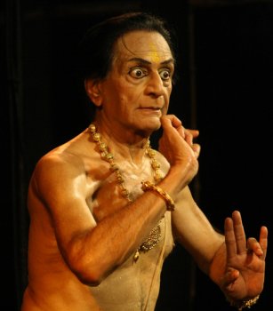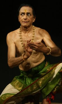 Chandrasekhar focused on abhinaya. The synergy created between the dancer and the onlooker is the rasanubhava, according to him. Choreography is one of the tools that the dancer uses to get the desired result. He compared nritta, the abstract in dance, to an abstract painting that can be interpreted as per the varied imagination of both the artiste and the onlooker. It also forms part of a dance recital to reinforce the appeal. Dance often focuses on the stylized translation of a lyric. And abhinaya is built on specified body language and expression of emotion, through shades of a raga that create both the mood and the meaning. The use of the eyes is pivotal (nethrabhinaya); facial expression (mukhabhinaya) bring in the navarasas; codified hand mudras (hasthabhinaya) is the vocabulary and grammar of a dance form. The stylized presentation includes the body postures as well. But the source of abhinaya is the heart, the wellspring of emotions that project bhava and rasa on the face. The maestro demonstrated how music leads creating the mood and how different shades of meaning can be created by bringing different bhavas and different rasas within the parameters of a general context. Although recorded music is widely used now, performers, prefer live music because it gives an opportunity to improvise instinctively, especially with an understanding orchestral support. A great teacher, he expanded imagination to tint a single line "Sutha paithiya karan...” wherein the mother tells the daughter, “How could you fall for a madcap?” The line interpreted the anguish of a mother, the rebellion of a teenager; the mother-daughter relationship fraught with hopes and fears, separated by generation gap. The ways and means adopted to persuade, ranged from love, disgust, anger, optimism and despair. The same line was used to show how in ekaharya, the performer balances the different characters on right and left and how they are followed on stage as if they were moving in and around. The master stressed on appropriateness, one example was that of smile. Even the shades of smile create different meanings. For, there are eight types of hasa: from smitha to attahasa. Different art forms and different characters make use of the appropriate variety according to the context. Knowledge of our classical literature was another aspect that Guru Chandrasekhar emphasized. Classical Indian arts are rooted in our mythology and history. Understanding the context is an essential aspect for projecting a piece. Since music and dance go hand in hand, the learning of music also is part of the syllabi for a serious student. As the great teacher went on interpreting just one line in three sessions, wonder hung in the air. From the heels to the head, the body movements and postures created a drama in its infinite variety both for the male and female principles that reside in the human body. Truly the lecture demonstration and the performance was a Bharatanatyam elocution.