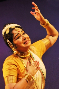Day 7 of Kala Nadam fest - Probal Gupta, Bangalore e-mail: probs_gupta12@yahoo.co.in December 10, 2011 The 7th day of Kala Nadam Dance and Music Festival organized by Murali Mohan and Nandini Mehta commenced with a Mohiniattam performance by Gopika Varma from Chennai. Gopika commenced her recital impressively with a Varnam accompanied with a coconut deepam congruous to the Kerala tradition in praise of Lord Aiyappa, much associated with the Mandala season. Neat movements surfaced right from the beginning, the slow movement aggrandizing the overall effect. However, too much heavy stamping of her feet, no way affiliated to the lasya oriented dance form of Mohiniattam marred the overall effect of her performance. One bows to the artiste’s creative ability in portraying the union of Lord Shiva and Lord Vishnu as Mohini - an amalgamation of tandava and lasya aspect resulting in the birth of Lord Aiyappa. The execution of Satyabhama, her second piece, highly inspired by the Kathakali genre, looked good comparatively. Neat execution of Narada’s sly character to arouse jealousy in Satyabhama’s mind, encircling in joy the Parijata tree being gifted by Krishna without even understanding Krishna’s intension were dramatically portrayed.