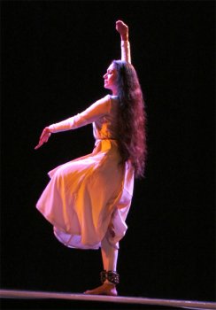 Working within the set framework of Bharatanatyam’s movement and vocabulary and yet using her artistic liberties in abhinayic-abstractions and interpretive elements, her dance embodied the philosophy of Lal Ded with an ease that only she could pull off. Her sensible usage of stage space in her choreography stood out exemplary. Dressed in ivory white with her long tresses flowing over her shoulders, Rama’s image worked its way into the rasika’s thoughts. Between acts, as she glided her way to the mike to announce or narrate the various stories of Lal Ded, one could see how much of genuine effort she put into a production of this nature. Lal Ded’s poetry is abstract amorphous philosophy and hence has an element of timelessness in it. She writes about issues that are relevant today, both to the society and to the spiritual seeker. To take such an unstructured piece of literature, like when she speaks of the society’s harsh reaction to Lalla’s philosophy and her response of taking praise and blame with equal measure, using the knots of a cloth on both her shoulders to weigh the symmetry, was a classic act of well-thought-out choreography. With every stride one could see Rama getting carried away into a cloud of mysticism. By the end of the performance, she not only got a standing ovation from the audiences but also transported them to the land of Lal Ded’s Vakhs. What else can one say about such a wonderful performance of contemporary dance? One had to see it to believe the experience of it. Eminent Prof. Neerja Mattoo, the one and only scholar who worked tirelessly all her life to propagate the works of Lal Ded and bring them into popular discourse and academia over the last many decades, would have been thrilled to view this performance. One must congratulate Anita Ratnam for thinking Rama could conceptualize a subject of this nature. Though short in its time limit, a subject of this nature could easily be elaborated into a full-fledged production. We hope Rama can work more on it. All along when one thinks of literature or performances from Kashmir, one gets to only see average to mediocre productions of Amir Khusrau’s bio-sketch or folk dances. This production surely opens new doors into the rich world of Kashmiri Literature. Kudos to Arangham trust and Rama for this significant collaboration! Veejay Sai is a writer, editor and a culture critic. |
