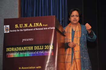 Indradhanush Dilli 2012 - Probal Gupta e-mail: probs_gupta12@yahoo.co.in Photos: Narender Singh January 31, 2012 SUNAINA, the Society for the Upliftment of National Arts of India, was established and registered on April 4, 1994 under the Societies Registration Act. Its founder president Guru Kanaka Sudhakar in association with other like-minded people has as her aim the spreading of our rich culture of dance, music and spirituality to the masses through education, training and research. One must commend the organization for not only the promotion of various dance forms of India through the dance festival Indradhanush at the cultural capital New Delhi, but also the measure of providing a sumptuous meal every day to the poor. ![]() Tripura Kashyap One must curtsy for the courteous hospitality of the organizer from the time the artist places his/her foot in the capital city till the time he/she departs. From the excellent local hospitality to the delicious meals every day, one remains truly obliged to Guru Kanaka Sudhakar, Kshitij Sharma, Aparajita Sharma and the management committee of the festival who provided excellent support to the unassuming guru for the smooth running of the festival. Even though I performed at the fest, I could not help writing about the few recitals that I was able to witness. ![]() Kanaka Sudhakar The festival started on 14th Jan with a lecture on ‘Indian classical dance for health and spiritual awakening.’ Indian classical dances are performed to invoke rasa and take the audience into a meditative phase through effectual abhinaya. In order to prove this hypothesis, Kanaka Sudhakar’s paper along with her demonstration of the same through Meera bhajan “Jo tum todo piya” in raag Sindhu Bhairavi and tala adi really moved a person to tears. Not only that, if the artist is involved in intense spiritualism during the demonstration, the rasikas also submerge in a devotional awakening, leaving them spellbound. The therapeutic benefits of Indian classical dances for wellness were demonstrated through a new concept of ‘Yogic Aerobics’ with the help of five middle aged ladies. ![]() Prateeksha Kashi Prateeksha Kashi, daughter and disciple of Bangalore based Kuchipudi exponent Vyjayanthi Kashi, was the first artiste of the evening. Commencing her recital with “Pahi Pahi Jaganmohana Krishna Tarangam,” the aficionados were spellbound with the artiste’s petite looks. The first item, an excerpt from Krishna Leela Tarangini with the dancer balancing on the edge of the brass plate and dancing turned out excellent, but the unrestrained abhinaya and body movements in ‘Mahishasura Mardini,’ an item propitiating Shakti, needs to be relooked. With her perseverance and dedicated practice, Prateeksha is bound to evolve more. ![]() Navia Natarajan The Maharaja Swati Tirunal keerthanam “Pannagendra sayana” set to Ragamalika in adi tala by Navia Natarajan set the evening apart. Trained under Padmini Ramchandran, Navia has established a niche for herself. Neat teermanams, perfect adavus and thattu mettus called for a perfect performance. Eye contact with the rasikas embellished with appropriate abhinaya effectively conveyed the heroine’s desire for union with the Supreme, Lord Padmanabha. The micro macro mingling was superbly brought out in the abhinaya, evidence of her assiduous training. A little attentiveness towards the aesthetics of her costume would have accentuated the overall effect of her performance. ![]() Pavitra Bhat & troupe Pavitra Bhat, one of the senior most and most active and seasoned disciples of Mumbai based Bharatanatyam guru Deepak Mazumdar was equally brilliant. Tastefully costumed, his pleasing stage personality is definitely an added advantage. Getting trained under a male guru who himself is a brilliant performer and understanding the subtle grammar of the male aesthetics to incorporate in the genre is definitely required especially for a form like Bharatanatyam. Pavitra’s perseverance has enabled him to adapt the male nuances which the form demands. Neat kudittas and teermanams without a slightest overdo in abhinaya definitely needs to be complimented. Commencing the recital with a self choreographed ‘Mahatripurasundari,’ a varnam dedicated to Maha Kali, Amba and Meenakshi set to raag Shivaranjini in adi tala, the aficionados enjoyed the synchronization of the group with the correct usage of the stage geometry. The Kalinga Narthana thillana set to the swara “ta rita tat jham” composed by Othukadu Venkata Subbaier was equally brilliant portraying the episode of the fight between Krishna and Kaliya within the river Kalindi. One enjoyed the dancer’s jumping into the river to search for the ball and the subsequent killing of the serpent Kaliya…. all done with aplomb. ![]() Deepa Chakravarthy However, the best performance of the evening was the Mohiniattam recital by Deepa Chakravarthy, disciple of Gopika Varma, which was definitely a complete metamorphosis of improvement from what this connoisseur has witnessed few months back at a dance festival in Bangalore. Entering the proscenium with “tam tam kita dhit dhit” vaittari juxtaposed with the striking circular movements set the choreography apart. “Lalita Labangalalata” set to raag Hindolam in adi tala with the dancer’s neat movements aggrandized with subtlety both in expression and nritta, set her recital apart. Restrained circular movements coming with intense practise of the chuzipoos to demonstrate the creepers, love of two cuckoos as a metaphor of the love of Radha and Krishna with the advent of spring were executed impressively. The Husseni thillana choreographed by Gopika was a refreshing addition to the Mohiniattam repertoire. Neat, graceful and languorous circular and semicircular movements derived from the chuzipoos, neat kalasams and meivazhakam accentuated her performance. ![]() Tala Vadya Nritya Lahiri January 15, the second day of the festival commenced 