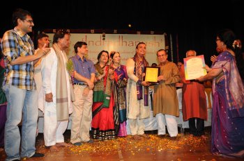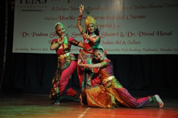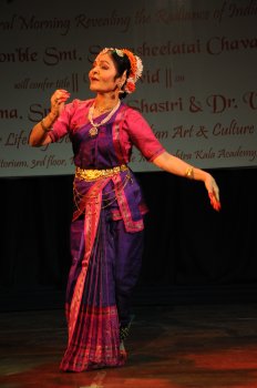 The Indradhanush Festival in Mumbai - Mythili Zatakia March 18, 2012 Tejas Foundation, Mumbai, hosted a one-of-a-kind classical dance festival on March 11, 2012 to honour three highly accomplished and revered Gurus. At the 3rd Annual Indradhanush Festival, Dr. Padma Sharma for Kathak (Mumbai), Guru Smita Shastri for Kuchipudi (Ahmedabad) and Dr. Vinod Hasal for Kathak (South Africa) were conferred the title 'Nrityavid' in appreciation of the arts and artistes who have taken their respective art forms and Indian culture beyond borders and enhanced it to an entirely new level. This explains the three categories of awards given: one within the city of Mumbai, one within India, and one outside India. The Tejas Foundation, the brainchild of Bhavnna C Shah, strives for the upliftment and betterment of the arts in terms of its social, cultural and educational stature with the aid of numerous workshops, festivals and more importantly provides encouragement to the under-privileged. This foundation essentially aims at felicitating artistes who have rendered their lives to dance and the art forms that they worship through a lifetime of dedication. Amidst the crowd was a fantastic company of dignitaries who were present to show their support such as Ashutosh Ghorpade, the Directorate of Cultural Affairs in Maharashtra, Dilip Shinde, the Joint Director of the MTDC, Mr. Vinod, General of the ICCR, South Africa, Ramesh Purav, senior folk dance maestro, Prakash Khandge, the Head of Department of the Loka Kala Department of Mumbai University, senior Kathak exponent Guru Ganesh Hiralal Hasal, Odissi exponent/guru Jhelum Paranjape, Bharatanatyam Guru Deepak Mazumdar, renowned Bharatanatyam gurus Raja Mani, Rohini Gokhale, Sharda Ganesh and Rupa Nadgauda. ![]() Felicitation ![]() Krishna Leela Tarangini The audience witnessed some inspiring performances such as an invocatory Bharatanatyam performance by Dr. Sanddhya V Pureccha’s disciples, followed by a mesmerizing dance recital by Kuchipudi Guru Smita Shastri and lastly, a captivating Kathak performance by Dr. Vinod Hasal himself. The Bharatanatyam recital comprised excerpts from the Sanskrit text Krishna Leela Tarangini, written by Narayana Tirtha in the 16th century. Mandira Joshi, Chitra Dalvi and Suhani Dhanki presented three pieces from this text which were conceptualized and choreographed by Dr. Pureccha. They commenced with an item on Lord Ganapati from the first tarangam of Krishna Leela Tarangini in Saurashtra raga and Chatushra atta talam, in which they evocatively described the form and virtues of Lord Ganesha. The next piece in khanda atta was descriptive of the childhood pranks of Lord Krishna, brilliantly choreographed in the format of Nritta Pada in Raga Karnatasaranga and tala khanda atta from the fourth tarangam, the Gopalavarnanam. The killing of the serpent, Kaliya Mardan and the tending of cows by Balarama and Krishna were narrated in the form of a shloka and subsequently, the story of Krishna playing the ball game with his friend, the fight with the serpent Kaliya and his triumph over the snake. A befitting conclusion from the same chapter was the prayer song “Paahi paahi jagamohana Krishna...” sung by the cowherds, composed in Raga Nadanamakriya and mishra chapu talam. The accompaniment was provided by Pureccha on the nattuvangam, Sivaprasad on the vocal, Satish Krishnamoorthy on the mridangam and Ragvendra Baliga on the flute. Smita Shastri, a highly accomplished Kuchipudi exponent rendered an inspiring performance with elegance, grace and deep involvement. She began her recital with the preliminary ritual in the Kuchipudi dance, the Rangapuja in Ragamalika and adi talam. “Angikam bhuvanam yasya...” and “Bharatakula bhaagya kanikena...” both of which are well known shlokas from the Abhinaya Darpanam were performed by her with the flawless and deep rooted purity of a senior dancer. Not only was this abundant in abhinaya, but she also showcased chollus and jatis with great strength and poise. Her second item transcended all barriers of age, as she portrayed Radha’s sakhi, who advises her to give up her pride and go to Krishna as early as possible to the bank of the river Yamuna. In this ashtapadi from Jayadeva’s Geeta Govindam, the episodes incorporated dwell upon Krishna’s pranks of stealing the gopi’s clothes when they go to the river banks to bathe. The sakhi also warns Radha to remove her anklets as their sound would alert the neighbours of her secret meeting. She decorates Radha for her union with Krishna, pleads with her to hurry up and proceed to be with him. Sakhi helps Radha in finding Krishna who is hiding behind the bushes and at last Radha meets her lord. “Yamuna tire vasati vane man more....” was proficiently rendered by Smita Shastri. ![]() Smita Shastri ![]() Dr. Vinod Hasal The concluding performer, Dr. Vinod Hasal from South Africa, represented a generation of Kathak dancers, a family heritage which he has taken across the globe, and so, almost immediately after he began his performance, the audience was assured of witnessing an enriching spectacle. As the devotee, he began with the Guru Vandana, “Guru Brahma, guru Vishnu....” and then depicted the magnificence of Lord Shiva in Anand Tandava. He presented pieces in a unique 13 matras setting in different jaatis. His father Guru Ganesh Hiralal Hasal and his brother Pt. Umesh Hasal accompanied him on the vocal and harmonium and the tabla respectively. The programme was undoubtedly informative about the lives and achievements of these committed dancers in addition to being beneficial in raising awareness of the importance to sustain and develop Indian culture and popularize it in every corner of the globe. |