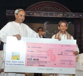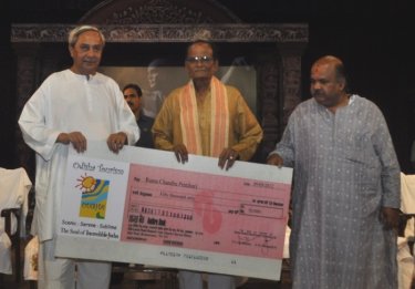 Then came the much awaited performance by the well trained Srjan Repertory that presented three items, all beautifully choreographed by Ratikant Mohapatra. “Bho Shambo” by Dayanand Saraswati described the different atributes of Lord Shiva. “Ananda Lahiri Devi Vandana,” an offering to Mother Goddess based on the composition of Shankaracharya was set to music by Debasish Sarkar. Every year, Srjan premieres a new production for the festival and this year, it was a neo classical work titled ‘Bishwas’ (faith) with music composed by Laxmikant Palit. Utilizing images from Christianity, Hinduism and Muslim faith, verses from Gurbani for voice of the people and poetry of Sant Kabir for the voice of god, the piece explored search for truth and the immense power of faith. While the people say that god is in Hindu, Muslim or Christian places of worhsip, god answers that to anyone who believes, god is with him. Easily identifibale movements like sufi twirl, a man carrying a cross were all integrated into the Odissi medium. Ratikant has also used a particular signature movement throughout the piece. The costumes for this item were in black and silvery gray, in contrast to the colorful costumes for the previous numbers. Usage of rather colorful lighting sometimes made it hard to discern the facial expressions but one must commend the committment of lighting expert Jayadev Das whose father had passed away that very morning. Das completed the last rites and honored his program commitment to Srjan. The gathering stood in silence as a mark of respect to the departed soul. The program was compered by the experienced Sadhna Shrivastav on all days. Pt Raghunath Panigrahi, who was seen enjoying all the programs every evening, blessed the artistes and gave away the mementoes. Through the festival, performers and invited guests received a set of beautiful books from Orissa Tourism. One must congratulate Srjan for continuously keeping up the tradition impeccably for the past 18 years and at the same venue for which the caretaker of Rabindra Mandap was honored. One drawback is the low one foot wall bordering the fringe of the stage which makes it difficult for us to see the footwork, which is so important in all dance forms, especially Kathak, if the artiste performs in the front half of the stage. Maybe artistes could adjust accordingly to the performance space! It is not easy to organize a festival in Odisha. Apart from whims of performing artistes, the organizer must also contend with some aggressive press persons who do not want to observe basic etiquette required of them. While their tendency to chatter loudly with each other as well as on the cell phone has now reduced considerably, they insist on still blocking the view for spectators, taking flash photos, taking photos and video of audience when performance is going on, rather disturbing and distracting for both performer and spectator. When gently told not to, they resorted to complaining aggressively to Ashok Kumar Tripathy on the fourth evening after the fusion music in full view of the audience and absenting themselves for the last day when only 3 or 4 press people turned up, making for a rather peaceful evening! Maybe it is time photo and video journalists are put through a course to enlighten them on concert etiquette. With so much hard work put into organizing a festival of this magnitude, one wishes Srjan a smoother sailing next year. View Slideshow of Dr. Vyjayanthimala Bali at the 18th Guru Kelucharan Mohapatra Award Festival on September 7, 2012 at Bhubaneswar ![]() Photos: Lalitha Venkat & Arabinda Mahapatra Slide show: More pics of the festival ![]() Photos: Lalitha Venkat Lalitha Venkat is the content editor of narthaki.com |