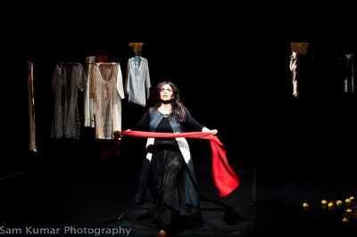 Anita is known for her adherence to aesthetics. Needless to say, Avani’s set sparkled in a sense of classic simplicity. It was also the idea that made the performance literally a talking point, and placed Tagore as its subject. Against the backdrop of a clothes line that emerged as a metaphor for womanhood and sharing and intimacy in some sense, two women, seated interestingly on two ends of the stage in the front, discussed Tagore, the man and his work in a way that Tagore came alive in all his intellectual charm. Where the words ended, movement began. Anita stepped in, and her choreography, drawn from a slew of dance styles, exuded a quiet sense of poignancy and elegance, befitting the man. Equally interesting was the juxtaposition of words and movements; the dancer seamlessly merged with the women in conversation and a musician, and together the stage became a happy, recognizable backyard of sorts. I remember somewhere, in the middle of their conversation, Akhila Ramnarayan, one of the women, gushed about Tagore and his eclectic choice of music. Avani, for me, was in many ways like that; it was an eclectic coming together of different strands to weave a pattern that makes a man we’ve known and read, a little more familiar. View Slideshow Photos: Chella and Sam Kumar Response |