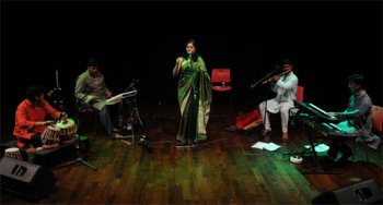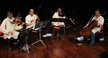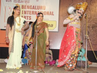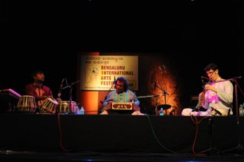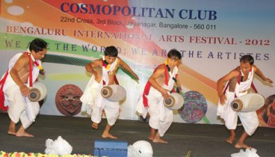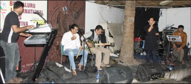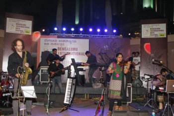Week two of Bengaluru International Arts Festival - Meghna Venkat e-mail: meghna.venkat@gmail.com Photos courtesy: BIAF September 21, 2012 The second week of Bengaluru International Arts Festival took off on 7th September. At Taj West End, there was an exhibition of paintings as part of the festival. Evam’s Standup Comedy with four young adults was a non-stop hilarious 90 minute show. The anecdotes of Chennai- Bangalore Express, cookery shows on TV, railway station co-passenger conversations and many everyday routines, even an irksome experience was transformed into a comical anecdote. Vasanth from Chennai, Rajiv from Madurai, Yudie from Nepal and Richard from Coimbatore came to Bengaluru with raw comedy on original theories from their towns - Madurai Muttai Parota, Chennai discotheques and so on. It was a refreshing hilarious cocktail that Evam offered. ![]() Exhibition at Taj West End ![]() Evam ![]() Pritam Chakraborty, Suddhashil Chatterjee, Jonathan Kay ![]() Pallavi & Arun At the other end of Bengaluru, melodious sounds of the string instrument combined with western saxophone in Brigade MLR CC as part of BIAF. Suddhashil Chatterjee on santoor and Jonathan Kay from Canada on saxophone together with Pritam Chakraborty on percussion carried the audience into the realms of peaceful music. The first number was a western composition “Afro Blue,” a beautiful piece rendered by Jonathan Kay. The second song in Jalasammodhini raag enticed the audience with impressive fusion. The last piece was a 'pahadi' music in raag Misra Pahad, and as the name suggests it evoked images of the enthralling Himalayan regions. From this genre, the audience was transported to fusion songs of Arun and Pallavi. The troupe had an impressive team of young talented keyboard player Nivas Prassana, on guitar was Alwin Fernandes, on bass guitar Aalap Raja and on Latin percussion Pramath Kiran. With her scintillating voice, Pallavi began with "ayya nee kaledhire kelu," a poem from the 12th century, followed by a poem by Shariff "naan alla" - I am not Him. Beautiful and meaningful compositions were carefully selected by the artistes. "Suvayya bisi idhe," a poem from folklore, was a thought provoking number in which percussionist Pramath Kiran impressed the audience with his skills. In the poem by DV Guddappa "mankuthimana kagga," Arun impressed with his complex beats. Bass guitarist Aalap took the music to another echelon. The last song of the evening was a Purandaradasa composition "Rokka." ![]() The Madras String Quartet ![]() Manasi Prasad & group The evening of 8th September saw different art forms coalesce on many stages across Bengaluru. Jagriti at Whitefield witnessed a fine combination of four artistes who embarked on a remarkable performance exploring new frontiers of Carnatic music. VS Narasimhan and Hemanthraj Muliyil on violin, BJ Chandran on viola and VR Sekar on cello, the quartet with a unique combination of south Indian classical music with western harmonic principles played Shankarabharana varnam. They continued with “Sri Maha Ganapathy” in Nattai ragam, “Sri Saraswathi” in Arabhi raag, “Dhyaanamosgraada” in Purvi Kalyani, a collection of amazing numbers which had a soothing effect on the audience. The fusion of Chakravaka krithi was a hit but the Bilahari raag composition stole the show with great swara prasthara, that one did not realize the absence or the need for percussion. To the delight of the Bengaluru audience, they concluded with “Krishna nee begane baro.” The show continued with Carnatic Lounge by Manasi Prasad. A charming personality herself, she took her spectators through a scintillating musical journey beginning with slokas and Shanthi Mantra in various ragas. Accompanied by her able musicians, she continued with ‘Geeta Govinda’ and ‘Meera bhajan’ in Bhowli ragam. “Akka Kelavva,” a composition of Akka Mahadevi stirred the audience. The pleasant concert ended with ‘Madhurashtakam,’ ‘Thillana’ and ‘Jagadodharana.’ Meanwhile, an exhilarating Chhau recital by Shashadhar Acharya and his troupe stole the show at Brigade MLR Convention Centre. The first item ‘Ratri’ in Seraikella Chhau commenced with an artiste carrying lamps. The verses are from Ratri Sukta in the Rig Veda that personifies night into a goddess. The second was ‘Nataraj,’ the dance of Shiva with many awe inspiring postures. The next item portrayed the eternal love of Radha and Krishna followed by Geetopadesha from Mahabharata which was depicted very effectively. The last number was ‘Mayura,’ the beautiful peacock dance. The audience was next treated to the majestic movements of Bharatanatyam by Guru Bhanumathi’s troupe. The first piece was ‘Purvarangavidhi,’ a brisk nritta item in ragam Hamsadhwani set to adi thalam. The next number ‘Tanigai’ was in praise of Lord Subramanya in ragamalika set to adi thalam. The brilliantly choreographed third piece took verses from Taitri Upanishad in ragam Revathi and ended with Rudranamanjali. After ‘Sarvadeva Namaskara,’ a composition of Anoor Ananthakrishna Sharma, the program concluded with a unique choreography on Gandhi, the father of our nation. ![]() Shashadhar Acharya’s troupe ![]() Bharatanjali troupe ![]() Jyotsna Srikanth & group ![]() Suma Sudhindra & group There was an overflowing gathering at UB City amphitheatre for ‘Fusion Dreams’ by Jyotsna Srikanth on violin and Marten Wisser from Austria on saxophone. After a good start with ‘Sprint,’ ‘Kalyani Mix’ was an excellent piece with swift and subtle chords. ‘Hip Hop Violin,’ ‘Alone with Mother Nature,’ ‘Irish folk Dance’ caught the attention of the audience. The performance ended with ‘Canter’ and ‘Bowling with violin’ leaving the viewers longing for more. Carnatic Jazz fusion featuring Dr. Suma Sudhindra on veena, Gerard Machado on guitar and Andrew Kay from Canada on western saxophone took the stage with their first number ‘