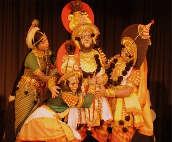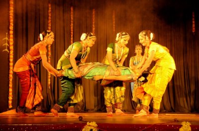 The festival was inaugurated by Padma Subrahmanyam, who commended Sailaja for presenting artistes of other art forms at her festival. Saila Sudha’s contribution of Rs.50,000 towards Padma Subrahmanyam’s Bharata Ilango Foundation lent a feel good cheer to the event. The chief guests were Kuchipudi duo Radha and Raja Reddy. Referring to Sailaja as Bharata putri, Raja Reddy commended her for hosting a festival of diverse art forms to show unity in diversity. ![]() Aditi Mangaldas The program started with a Kathak recital by Aditi Mangaldas and two male dancers of Drishtikon Dance Foundation, Delhi. She started with ‘Varsha’ (monsoon), an extract from ‘Footprints on water.’ The roll of thunder, the lightning across the sky that changes color, the croaking frogs and dancing peacocks, the wet bird and the pitter patter of raindrops were evocatively depicted by Aditi in this solo with music composition by Shubha Mudgal. ‘Gurave Namah’ paying homage to a Guru, who like the almighty is present in the five elements, was a vibrant duet featuring Dheerendra Tiwari and Piyush Chauhan, with music by Samiullah Khan. Choreographed by Aditi, Kathak was interspersed judiciously with martial art movements. In both these numbers, one could savour the slow and fast movements with the audience applauding every now and then, especially for the chakkars! The final item was ‘The River,’ an extract from ‘Now Is’ by all dancers with suitable change in costume. In contemporary style based on Kathak, it featured some wonderful percussion as prelude to vocals by Shubha Mudgal and Bombay Jayashri. It goes to Aditi’s credit that she apologised to the audience for the rather loud volume of the music, since she was unable to convey her request to the tech support. Not that the audience had noticed, used as they are to loud volumes in general! ![]() Vali Moksha Keremane Shivananda Hegde and members of his Shri Idagunji Mahaganapati Yakshagana Mandali from Karnataka, clad in colorful, gorgeous costumes, head dress and elaborate makeup mesmerized the audience with a gripping depiction of Vali Moksha. The entry of Rama and Lakshmana, the abduction of Sita, search for Sita, entry of Hanuman and the monkeys (a big hit!), entry of Sugriva, Vali-Sugriva fight where the latter is defeated, their fight again when Rama shoots an arrow at Vali, moksha of Vali were packed beautifully in a one hour presentation high on drama with commanding vocals (Anant Hegde) and percussion that lent such drama to every scene. Though lyrics and spoken dialogue was in Kannada language, the evergreen Ramayana is so ingrained in the Indian psyche that language was no barrier and had the rasikas eagerly relishing every scene. The majestic Rama was played by Shivananda Hegde. The body language of Sugriva was simple and effective especially when he asks Rama why he had not killed Vali. There is a touch of humour when Rama tells Sugriva that he could not since both looked alike from a distance and Sugriva then wears a garland as identification! Sugriva clearly had a stellar role. The dying scene of Vali was so poignant that the audience watched in pin drop silence, breaking into thunderous applause as the scene ended. ![]() ![]() Priti Patel and group ![]() ![]() The stunning display of pung cholom and dhol cholom (dhol is a large drum), combining dance, drumming and acrobatics in skilful coordination, thrilled the rasikas. Sun is also Vishnu. The indestructible atma is Madhusudan himself. Krishna plays the cosmic raas lila with Radha and the gopis to accompaniment of sankirtan music. Priti Patel as Krishna, Radha and the gopis in the typical Manipuri cylindrical costume in green and red respectively dazzled in the final segment. The presentation had English voice over and the narrative progressed smoothly without interruption, featuring all elements of a Manipuri dance recital. One did not realize that the orchestra had been seated in the left wing! Suraj Kumar on vocal, Gagan Singh on pung and Ratan Singh on flute enhanced the presentation with their strong musical support, as did the aesthetic lighting. It was a pity the inexperienced compere used high sounding words in the wrong contexts and also insisted on using the title prefixes of Padma and Kalaimamani every single time an artiste’s name was mentioned… Since all performers of the fest as well as special invitees were awardees, it got to such a point that one was ready to scream in frustration! ![]() Bharati Sivaji and group The second evening started with a serene Mohiniattam presentation by Bharati Sivaji and her group from Delhi. Ganapathy stuti to sopanam music wove images of this son of Shiva and Shakti, his flapping ears, waving trunk and so on. In Devi stuti, the goddess was evoked in Aarabhi ragam set to adi talam. “For many centuries, Kerala has the tradition of rendering ashtapadis in the sanctum sanctorum, sung in distinct sopanam style (sopanam meaning ‘steps that lead to the sanctum),” said Bharati. It was about Krishna’s dalliance with the gopis as Radha looks on, in ragam Pantuvarali followed by Mohanam. It was interestingly choreographed as a group item for the four dancers. Bharati Sivaji was a charming, doting mother in the famous Thalattu (lullaby) ‘Omanathinkal” by Irayaman Thampi, said to have been written for Swati Thirunal when he was a baby. The concluding group item was the popular ‘Pandattam’ composed by poet Vallathol Narayanan in ragam Kambodhi. The poet compares the ball going up and down to life’s ups and downs. Not only did the imaginary ball get tossed between the dancers, it was also thrown into the audience and thrown back to the dancers! The beautiful costumes and the swaying movements were soothing to the eye. Vinaya Manoj, Deepa Nair and Olga Stolirova did their guru proud. ![]() Sailaja The hall was already overflowing with enthusiastic rasikas trying to find seats as Sailaja and dancers of Saila Sudha presented a