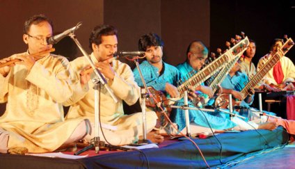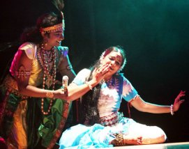 16th Annual Dance and Music Festival of Gunjan Dance Academy - Dr. Sunil Kothari e-mail: sunilkothari1933@gmail.com November 25, 2012 Meera Das is a senior exponent of Odissi dance, trained under Guru Kelucharan Mohapatra at Odissi Research Centre, Bhubaneswar, along with Sujata Mohapatra, Bichitrananda Swain and others, when celebrated dancer Kum Kum Mohanty was in charge of the Research Centre. A seasoned dancer, Meera Das runs her Gunjan Dance Academy at Cuttack imparting training in Odissi, performing, choreographing, travelling within India and abroad and has made a name for herself as a leading dancer and a choreographer. The four day festival of dance and music was flagged off on 17th November at Shaheed Bhavan, the spacious auditorium at Cuttack. I could arrive on the 18th November only, and therefore missed the program on the first day. Second day The grand opening of the second day began with Tala Mahodadhi, a large orchestra on lines of All India Radio Orchestra which were once arranged by Pandit Ravi Shankar. This was conceived by ace percussionist Dhaneswar Swain and was assisted by vocalist and musician Ram Hari. He rendered the opening song in his soulful voice, the sound of waves of the ocean were intermingled artistically. Lord Jagannath is addressed as Mahodadhi. The tala vadya, mardala, pakhavaj, violin, sitar, nagara, a large drum, flute and synthesizer ensemble created a soundscape that was musically inventive and pleasing. Nearly thirty musicians took part in it. An impressive attempt and excellent team work. ![]() Meera Das and group ![]() Tala Mahodadhi ![]() Malabika and Lopamudra ![]() Shibani It was followed by the young dancers of Gunjan Dance Academy who danced in praise of Sun God, Surya. The image of Surya, with a charioteer driving horses across the sky was imaginatively choreographed by Meera Das for the junior dancers. They all danced harmoniously, never looking at anyone for any cue. They executed their steps correctly. It was a good idea to give an experience of a stage performance to the up and coming dancers. Devi stuti by Shibani had a devotional mood. The visage of the dancer registered expressions of the beautiful and fearsome Goddess, who astride a lion, holding a trident, vanquishes the demon Mahisha et al, all portrayed appropriately. The iconic image was sculpturesque with weapons, the vahana, the animal on which the Goddess rides and so on creating a world of mythological beings. Shibani with her large eyes and mobile face was successful in creating those images effectively. Malabika and Lopamudra, two young disciples, have received thorough training in Odissi under Meera Das, as was evident from the very stances they took in a duet number. The melodious Desh raga pallavi unfolded with verve and grace, the two dancers often creating symmetrical patterns, and at times mirror images. Nritta (pure dance) in pallavi sparkled with ukutas and patterns, creating interesting visuals. Both the dancers acquitted themselves well giving an impression that they are aiming at a professional level and are bright stars of Gunjan Dance Academy. Naba Kishore Mishra, currently holding professor’s post at Utkal University of Culture, Bhubaneswar, is a seasoned artist. His unfolding of story of Kaivat, who refuses to ferry Lord Rama across, unless he washes his feet was presented in a more lokadharmi, realistic and popular mould. The argument indeed is a poetic conceit, because Kaivat argues that when Lord Rama touched the stone, it turned into a beautiful woman, referring to Ahalya episode. He, a poor boatman, could not afford to have his boat turned into a woman. Lord Rama allows the devotee to wash his feet before he ferries him across the river. Kaivat gathers the sand from the ground on which the Lord had walked, placing it on his head as a blessing. The portrayal indeed was a touching one. One would have enjoyed it more had it been performed with restraint and less overdone abhinaya. ![]() Ayswaria Wariar Mohiniattam exponent Ayswaria Wariar from Baroda, participated in the festival under the scheme of Kerala Sangeet Natak Akademi, presenting thematic aspect using Kalidasa’s Shakuntalam, specially written and composed with Sopanam music. Ayswaria has a good stage presence and a sense of designing costume to suit the character of Shakuntala. Selecting a few key incidents of the well known story, King Dushyanta’s hunting a deer, coming to the hermitage, meeting with Shakuntala, gandhrava vivha, Dushyanta’s promise to send for her after he returns to his kingdom, Shakuntala’s inability to produce the ring, king’s loss of memory on account of the curse of Durvasa and not recognizing Shakuntala, her anguish when accused of lies, her anger addressing Dushyanta as Anarya, uncivilized one, utter dejection, conveying the state of women who are deceived even today by males ,with a touch of contemporary resonance, Ayswaria ‘s attempt was indeed sincere. However, the abhinaya number was rather too long for an overcrowded program for one evening with the result that there was a very thin audience who stayed back. Aswariya would do well to keep another CD for a briefer version of Mohiniattam repertoire to suit the timings in such a conference. Her abhinaya was intense and she succeeded in projecting the inner turmoil, helplessness, agony, and righteous anger when accused by Dushyanta for ensnaring men with wily attempts. In spite of her dignity, Shakuntala bursts forth addressing him as Anarya. That was a dramatic moment. Ayswaria did not show Shakuntala being taken away by apsara, as in the play. She ended on a note of begging mother earth to accept her. Her helplessness makes her beg mother earth, but in the case of Sita, mother earth takes her by opening up. Ayswaria of course did not suggest that mother earth rescued Shakuntala. The music was composed to project the right bhava, expression of pathos and anguish. Ayswaria gave a mature performance. The l
