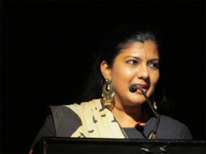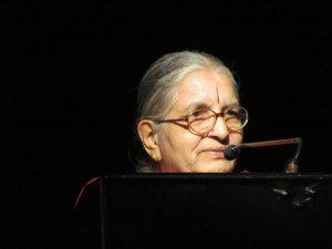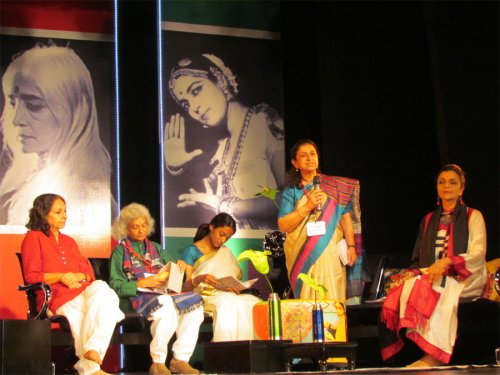 Convener Dr. Anita Ratnam then gave a brief introduction and unveiled part of designer Rex’s modern stage set with sleek black couches and colorful pillows with images of iconic women. After the inaugural address by Kartik Fine Arts Chairman, L. Sabaretnam, a second surprise unveiling revealed four illuminated images of legendary dancers Balasaraswati, Chandralekha, Indrani Rehman, and Rukmini Devi Arundale! The keynote address was delivered by Dr. Prema Nandakumar, and her lucid discussion on the relevance of Hindu mythology’s epic women turned into a witty satire of arranged marriages in India. ![]() Stage ![]() Sudharma Vaithiyanathan (Photo: Vipul Sangoi) ![]() Dr. Prema Nandakumar ![]() Dr. Swarnamalya Ganesh The conference began with an engaging presentation by Dr. Swarnamalya Ganesh on the depiction of women in Sangam literature. Focusing mainly on the Tamil epic poems Silapadikkaram and Manimekalai, Dr. Ganesh examined how Kannagi, Madhavi, and Manimekalai were powerful agents of change even while being subjected to the conventions imposed by the social systems they lived in. For example, she hypothesized that Madhavi made the conscious decision to become a Buddhist ascetic based on the fact that she was extremely well-read (as befitting a courtesan of that time). Dr. Ganesh also revealed several other striking parallels between these three characters and various female deities worshipped during the Sangam period. The second session began with a Bharatanatyam performance by 18-year old Sudharma Vaithiyanathan in which she charmingly enacted the pivotal moment when Sita first sees Rama. Her performance was followed by an incisive panel presentation on Sita with Veenapani Chawla (contemporary theatre artiste), Dr. C.S. Lakshmi (research-scholar), and Kapila Venu (Nangiar Koothu artiste). All three presenters discussed Sita as a “non-gendered symbol of injustice and oppression.”