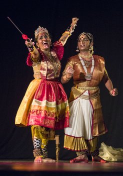 Natya Darshan Seminar EPIC WOMEN - Conference / Performance conclave Dec 21: Epic Women performances Photos: Vipul Sangoi December 21, 2012 Engendered emotions ![]() The first evening at the Epic Women conference opened with ‘Amba Shikhandi’, a new choreography by Priya Murle and Srikanth. While Priya followed the traditional folk Therukoothu style to depict Shikhandi, Srikanth adorned himself in a Sthree Vesham to show a mellower Amba. Both of them swear to fulfill their revenge against Bhishma, the grand old man of the family in the Mahabharata. Showing the various emotions this famous character felt, the end message “Hell hath no fury like a woman scorned”, was driven home effectively with brilliant characterization of the roles both Priya and Srikanth chose to portray to some soul-stirring singing by Nandini Anand and nattuvangam by Roja Kannan. Heroine Helen ![]() The second performance for the evening was a solo contemporary dance presentation by Rajika Puri supported by multi-talented percussionist Suchet Malhotra. Portraying ‘the face that launched a thousand ships’ Rajika’s monologue dealt extensively with the story of Eleni of Sparta (commonly known as Helen of Troy), the Trojan war, the various characters in Greek mythology like Zeus, Agamemnon and other tales of love and war. Comparing that war to the Kurukshetra battle in the Mahabharata, Rajika’s Odissi mixed with her new choreography. Dressed in pure white, Rajika is a highly effective story-teller, narrating the ancient Greek myths in great detail, using English and ancient Greek in speech and song. The musical score worked excellently with Rajika’s performance. Mystic Princess ![]() The third and last performance for the evening was ‘Yashodhara,’ a multi-genre production directed by renowned playwright, scholar and performer Gowri Ramnarayan. Collaborating with Bharatanatyam dancer Mythili Prakash and Carnatic vocalist Amrita Murali, Gowri’s JustUs Repertory put together a brilliant show on the life of Buddha’s wife Yashodhara whom he abandoned when seeking nirvana. Dealing extensively with the subject, Gowri spoke of not just her inspiration for her production, namely an ancient Ajanta cave mural, but also the hidden philosophy behind the life of a character like Princess Yashodhara. Was the Buddha right to make her his first victim in his search for enlightenment? Mythili’s soulful abhinaya conveyed her grief and loss as an abandoned wife, and as a single mother raising their son. Gowri’s well-researched script and Amrita Murali’s excellent Carnatic vocals came together in Mythili’s multi-dimensional portrayal of Yashodhara. All the three shows had a packed Bharatiya Vidya Bhavan hall with some of the most renowned faces in the world of music and dance attending it. Seen amongst the audience were celebrated vocalist Aruna Sairam, Bharatanatyam dancer Malavika Sarukkai and Sudharani Raghupathy, several writers and scholars, and delegates to the Epic Women conference and scores of rasikas who filled the auditorium. |