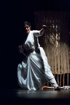 Natya Darshan Seminar EPIC WOMEN - Conference / Performance conclave Dec 22: Epic Women performances Photos: Vipul Sangoi December 22, 2012 The second evening of the Epic Women conclave commenced with a solo performance by New York based Preeti Vasudevan, a disciple of the Dhananjayans. She premiered ‘Savitri: Dancing in the forest of death,’ a solo contemporary dance creation. With a broom, a plastic bucket and coconut coir ropes dangling like a curtain, she recreated the myth of Savitri with her dance and theatrics. Dressed to suit her well-maintained figure, Preeti’s work with jarring screams and vocally disturbing sounds was weak in communicating to the audience. She tried to caricature the characters of the story but her performance came across as jarring. This is the kind of work that New York City audiences (who may know nothing about Savitri) might tolerate, but not the discerning Chennai rasikas. ![]() Preeti Vasudevan ![]() Kalpana Raghuraman The second performance was by Kalpana Raghuraman from Holland. She premiered ‘In the spirit of Frida,’ a tribute to the world-renowned artist Frida Khalo. In a simple stage set, Kalpana powerfully conveyed Frida’s body wracked in pain by assuming a position on the floor, rising with accurately recreated painful motions, while excerpts from the famous movie ‘Frida’ played in the background. Kalpana’s choreography using her own body, imaginatively recreated the visuals being displayed. She powerfully evoked the pain and sorrow in Frida’s life and the courage with which she fought to create another world through her art. Kalpana’s abstract movements were thoroughly riveting in this 19-minute solo. She used her body, lying down and yet profoundly active to depict Frida’s strength and courage in pursuing her art defying social rules and overcoming physical pain. Indeed, Frida’s indomitable spirit is an inspiration to women of today. The third show ‘Gandhi: Warp and Weft’ by Delhi-based Bharatanatyam dancer Geeta Chandran was a tribute to Mahatma Gandhi, his philosophy and ideals. Taking a woman’s perspective of Gandhian philosophy and its relevance today, Geeta explored the various concepts of secularism and Ahimsa. Using the technique of Bharatanatyam, contemporary movement and some wonderful music, Geeta got across Gandhiji’s message to the gathered rasikas. Geeta’s idea of performing Gandhian abstract philosophy in a way that it can reach out to the lay person is commendable. Using just a single standing chataai as a prop and with various changes in her costumes, Geeta effortlessly conveyed Gandhi’s message on all the six topics she chose. While the production was not directly connected to the theme of the conference, it showed a different and fresh take on Gandhi through the eyes of a 21st century Indian woman. ![]() Geeta Chandran ![]() Kapila Venu The evening ended with a brilliant performance by Kapila Venu, a masterful Koodiyattam artiste. Describing the pain and suffering of Sita from the Ramayana in her mono-act ‘Sita Parithyagam: The Abandonment of Sita,’ Kapila exhibited her mind blowing talent and skill in the Nangiarkoothu style. Kapila with her versatile talent was able to portray several characters in the story with equal ease. With expressive abhinaya and excellent Mizhavu players Kalamandalam Rajeev, Kalamandalam Hariharan and edakka player Unnikrishnan, the show got a standing ovation in the end. Kapila is one of the most versatile actors of the Koodiyattam tradition. Depicting the entire story with extreme purity of the art form and honest depictions of the characters, Kapila had everyone in the audience mesmerized by her superb acting. In the final scene when Sita refuses Rama’s demand to prove her chastity by a fire ordeal, deciding instead to return to her mother, the Earth, Rama’s repentance was worth seeing with a thousand eyes, especially through Kapila’s moving abhinaya. |