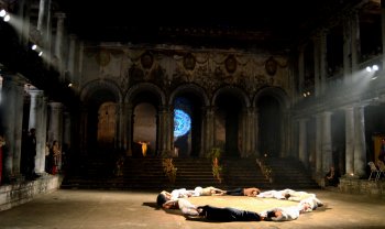 Dialog 2013: A conversation between India and Germany - Sulagna Mukhopadhyay, Kolkata e-mail: sulagna64@gmail.com Pics: Shilbadhra Datta ©: Goethe –Institut / Max Mueller Bhavan Kolkata January 22, 2013 The colossal building with its relics, the thakurdalan (the place where gods and goddesses are worshipped), the andormahal (the place meant for women and also used for living) did not ever invoke any special feeling among the people living in that neighbourhood. It was just another ordinary building standing there, carrying the history of Bengal Renaissance and the Babu culture. Situated at a stone-throw distance from the Jorashanko Thakurbari (The Tagore House), Jorashanko Rajbati, a 250 year-old mansion belonging to the Roy family became a house of significance to all the city-dwellers of Kolkata mid-January. The Roys of today living in that campus are descendents of Raja Ramchandra Roy, a merchant. His father Sukhomoy Roy built this house and became the zamindar of that area during the time of the British. Photographs hanging on the walls of the building depict the glory days when they had an intense interaction with the officials of East India Company. ![]() On the evening of 12 January 2013, guests and a few inquisitive passers-by slowly assembled in front of the main gate of the mansion to watch the house come alive through dance, music and shadow drama. With the clock striking half past six, the main entrance got illuminated with soft beige light and three dancers were seen on the parapet making minimal movements. There was no music and the dancers seemed like marble statues which could be found in such heritage buildings. As the door opened and the audience entered the sadar bari (the main building), a clock was seen hanging on the wall near the door, which raced back from real time to be a part of the era which Sasha Waltz projected in her production. Sasha Waltz is no new name in the dance history of the world. Based in Berlin, Sasha runs her company Sasha Waltz & Guests with her husband Jochen Sandig. Sasha took her first dance lessons with Waltraud Kornhass, a disciple of Marie Wiegmann. Later, she joined the School for New Dance Development in Amsterdam. She even visited America for training. In 1992, Waltz became the artist in residence in Kuenstlerhaus Bethanien. In 1993 she founded her company. Her career as a dancer kicked off over the following three years with her production Travelogue-Trilogy. Kolkata knows her since early nineties. Earlier she was here with her two productions. Both the productions were sponsored by Goethe Institut. This was her third visit to this city and her love for the architecture and history of the city brought her back to Kolkata. She visited the city last August with the aim of producing Dialog 2013. Her visit included quite a number of historical buildings, all situated on the dingy, narrow road of Chitpur in North Kolkata. Finally, she selected Jorashanko Rajbati, situated at the Ganesh Talkies crossing of Chitpur. She returned to Berlin and spoke to musicians of the Mahler Chamber Soloists and Padmini Chettur, a renowned contemporary dancer from Chennai and a disciple of dancer-choreographer Chandralekha. The production was supported this time by the Goethe Institut (Max Mueller Bhavan), Kolkata. With this event, Germany-India 2011-2012 Infinite Opportunities concluded. The site specific Dialog 2013 was staged on three consecutive days beginning 12 January 2013 and it would never be staged anywhere else in the world. In an interactive session held at Max Muller Bhavan shortly before the production, Sasha Waltz told Dr. Martin Waelde, the director of Max Mueller Bhavan, Kolkata, reputed dancer Vikram Iyenger and also her audience, that though the dancers had a basic structure to follow, they would have the liberty to improvise during the performance. The production included the historical time of British rule in India and the cultural scenario of Kolakta during that period, the history of the Roy family and also inhabitants living in that neighbourhood, poems, dialogues and vignettes, which at times sounded eccentric. The architecture became the protagonist for Sasha. Each room along with the courtyard and the thakurdalan became lively simultaneously and each place had a different thing to offer to its audience. ![]() The central courtyard was dark when the audience was welcomed inside the house and dancers of Chettur were seen rolling through the rows of columns which encircled the courtyard. In the middle the dancers of Sasha silently formed rings by rolling on the floor and again dismantling them, showcasing the disorder and the order of the era. Across the courtyard was the place where once pujas were carried out. There were faded paintings of gods and goddesses. With the effect of light a chakra was created in the middle of that thakurdalan, and a little Radha was seen waiting for her Krishna. Draped in white pyjama-kurta, both Krishna and Radha take turn to appear there. The duration of each scene was not more than 5-10 minutes. So the audience did not have the chance to get bored. The staircase leading to the first floor of the mansion had pictures which showed the interaction between the then Governor of Bengal and the head of the Roy family. From one of the rooms, songs of Tagore could be heard. The audience assembled on the first floor and with fragmented beat of drums, the dancers suddenly started to gain momentum. Scenes began to change faster in the courtyard. There were exchanges at all levels - between the dancers of Sasha Waltz and Padmini Chettur, the audience and also the family members of the house. Men were seen sitting in the library, reading books or flipping through the pages of books covered with dust. The room once meant for round-table conference became alive with interaction between dancers and the audience present in that room. On the wall behind portraits of the family members were shown through projection. I