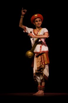 Journeys of the soul - Veejay Sai, Bangalore e-mail: vs.veejaysai@gmail.com Pics: Santosh Bankapur February 8, 2013 Where does a sense of belonging come to a geographic location? Can something as a dry and bland town be a subject of artistic inquisitiveness? Why not! Every holy city in India speaks to its seeker and to the visiting pilgrim. As the famous writer Raja Rao mentions in his magnum opus ‘The Serpent and the Rope’, India is not a geographical or historical entity but more of a philosophical concept and a symbol of spiritual calling. “India is not a country, it is a perspective,” he says speaking about how every location is dotted with a rich history, mythology and folklore. Each and every village and town in the country has its own story to tell. ‘Sthala puranas’ are a genre of writing on their own. The English language has almost no word equivalent to describe the depth of what these stories mean and how they get interpreted time and again. On the last day of the famous Kinkini festival, Bangalore’s very own Praveen Kumar presented ‘Pandharpur,’ a choreographic work on the famous holy town in Maharashtra. While knowing the tale and myth is one side of the story, adapting it and putting together a dance presentation is yet another challenge. ![]() As the program began with everyone’s favourite Marathi song to Lord Ganesha, ‘Prathama tula vanditho’ made famous in the movie ’Ashtavinayak’ through the voice of Pandit Vasantrao Deshpande and Anuradha Poudwal, the audience got a first glimpse of a silhouette of Lord Vitthala, crown, fish-ear ornaments and a garland of roses around his neck intact, in the dim lights amidst chants. Cut to! One has to say ‘cut to’ because of the abrupt cut in the narrative that kept repeating itself through the course of the presentation almost like three scenes juxtaposed. Opening with Adi Shankara’s famous ‘Pandurangashtakam,’ Praveen’s abhinayam was fresh and innovative. Every time a stanza ended with ‘Parabrahma lingam bhaje Pandurangam’, the performance increased in its intensity. Describing the physical beauty of Lord Vitthala in the lines ‘Lasath kundalaaakrantha gandasthalaangam, Japaraga bimbadharam kanja nethram,’ one could see Praveen shine forth with bhakthi. While Kaushik Aithal is certainly one of the better of youngsters we have among Hindustani vocalists in Bangalore, he seemed clueless on the pauses he needed to take and to sing for dance. The second part of the presentation dealt with the story of Saint Namdev. Praveen returned with a Maharashtrian turban adorning his head and a tambura around his waist, singing ‘Panduranga Vitthala Pandharinatha Vittlaha’. With the Kartal in his hands, he had the audience swinging to the tune and took them along with him on his pilgrimage. Along the way we see the idols of Lord Ganesha, Hanuman and the whole devotional procession. Narrating the story of Saint Namadev, Praveen’s choreography, though a bit hurried, was a delight to watch. Using smart techniques to show the darji Damashet’s day-to-day tailoring business and his longing for a child, the choreography was noteworthy. A bit rushed in the dream sequence, which could have been done with more crispness, Praveen danced to the melodious Abhangs ‘Sundara the dhyaana’ and ‘Pandharicha vaasa chandrabhaga snaana’ in the following scene. For rasikas who are fans of old-world Marathi Abhangs, this production turned out to be a good time to revisit some of their favourite numbers. ![]() In the last part of the production, Praveen paid homage to the presiding deity of the town. Though Pandharpur is well known for the temple of Lord Vitthala, the presiding deity of the place is Lord Shiva. The Jain author Hemachandra who lived between 1089- 1172 AD, notes that the epithet of Lord Vitthala actually has a Shaivite history. The saints of the Varkari tradition celebrate both Shiva and Vishnu. Praveen narrated the story of Saint Narahari Sonar, a non-compromising staunch Shaivite who lived close to the Vitthala temple but never visits the temple as he feels he has nothing to do with Lord Vitthala or his devotees. On getting orders for making a gold waist-band for Lord Vitthala, Narahari refuses the offer outright saying he cannot measure the statue and would never enter the temple to do so. The devotee who gives him the order agrees to bring the measurements and accordingly Narahari makes the waist-band which turns out to be tight for the statue on the day of adornment. The desperate devotee returns to Narahari with a request to repair the ornament. Narahari who needed the exact measurements agrees on the condition that he would repair, if he was allowed to measure the statue blindfolded. The blindfolded Narahari heads to the temple sanctum to measure Vitthala’s waist and begin his work. He gets curious as he goes about his work when he feels the statue adorned with animal skin. On groping he realizes his hands feeling the antelope, axe, trishulam, damaru and all of Shiva’s paraphernalia. He even feels the rudraksha mala around his neck, crescent moon on his matted locks and the Ganges on his head, his third eye on his forehead and snakes over his body. His increasing suspicion and anxiety lead him to remove his blindfold with great expectancy but he is utterly disappointed to see Lord Vishnu instead of Lord Shiva. After several attempts, Narahari realizes it is the leela of god making him realize that Shiva and Vishnu were one. Praveen’s acting in these sequences was outstanding. Alternating his act between facing his back to the audience as Lord Vitthala standing arms akimbo and facing front as the blindfolded Narahari, Praveen lent the right amount of theatricality to the series of events unfolding to the backdrop of Abhang music. However, in the production, there was a striking absence of Goddess Rukmini or Rakhumayi as she is known in Pandharpur. What is Lord Vitthala without his beaut