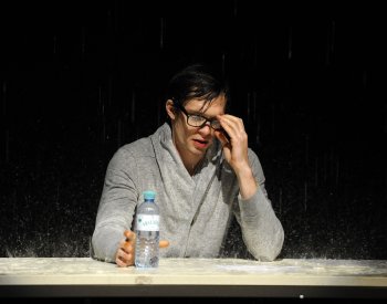 Courtesy: Max Mueller Bhavan, Kolkata The performance was arranged by Goethe Institut Max Mueller Bhavan, Kolkata, in collaboration with Ranan at Purple Movie Town. The studio along with its acoustics was befitting for such a show. After performing at Bangalore and Dhaka, Felix reached Kolkata with his crew for a show on January 11, 2013. He is a contemporary dancer-cum-choreographer from Berlin who has worked with artists like Krzysztof Warlikowski, the renowned contemporary Polish theatre personality. The piece is a monologue. Felix begins the piece using Brecht’s Theory of Alienation and then gradually adopts Viktor Borisovich Schlovsky’s Other Theatre form. His prologue concerning the health hazards of the main actor and his narration of the piece creates a make-believe situation amongst the audience. He draws a circle on a white board, which is divided into two parts. This circle shows the journey of a hero from the beginning to the end. As a narrator Felix explains how in the middle of his journey the hero meets his mentor, whose beguiled presence helps Odysseus to overcome the hurdles faced by him in his journey of life. Felix starts reading out excerpts from the script when suddenly heavy shower along with lightning and roars of thunderbolts makes the hall completely dark. The production gathers momentum at this juncture. The projection begins and the hero is seen swimming against the rough waves of the sea. The light on the centre stage gradually focuses on Felix Ott, who is completely wet and tormented by the unperceiving situation. He is lying upside down on a centre table, imitating the movements and strokes of that, reflected on the screen. The efficacy of the production lies in its synchronization of Ott’s gestures and facial expressions, with those on the screen. After meeting goddess Ino, he receives the magical cloak, takes off his wet clothes and puts it on. On the screen we can see Ino speaking to the hero, telling him, “Your journey has just begun,” hinting at the odds he is going to face in his navigation. The magic costume protects him from all dangers he faces in his quest for inner peace and success in life. The hero, who is gathering experience in his journey, says almost at the end, “The longest journey begins with a single step.” Odyssey Complex is a surreal experience in which the actor Felix Mathias Ott diachronically questions the existence of a hero, the experience he gathers from masses and its reflection in his lifestyle. Tech savvy Ott blends his powerful acting, his dance movements, his dialogues perfectly with the film which has been shot separately to give a complete shape to his thoughts. Sulagna Mukhopadhyay was trained in Bharatanatyam by Guru Thankamani Kutty and Indian folk by Late Botu Pal. She has an M.A. in Comparative Literature and has freelanced for various leading newspapers of Kolkata like The Telegraph, The Statesman and Ananda Bazar Patrika. She has written articles on dance and gender issues. She is a teacher of South Point School since 1996. |