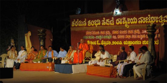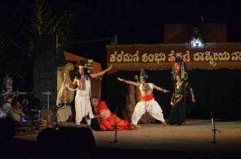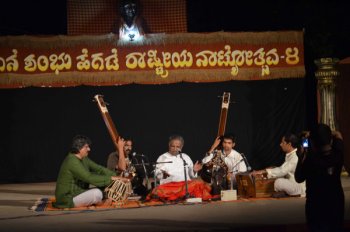 Cascading effect of Keremane’s artful journey - Jyothi Raghuram e-mail: jyothi.r.ram@gmail.com February 26, 2013 If one looks at the cultural activities in the major cities of India, Bangalore emerges as a vibrant place that hosts very many events connected to traditional performing arts, not all of them confined to performances. If this is a barometer of nurturing the arts, several organizations outside the state capital have been working with greater fervour, but have not come into the limelight because of their geographical location and their simplicity of not seeking publicity. When the five-day Sri Keremane Shambhu Hegde Rashtriya Natakotsava-4, concluded at verdant Gunavante in Uttara Kannada recently, it was time to mark out the event as a spectacular show in style, variety, content, and substance. Keremane Shivananda Hegde, the son and artistic heir of Keremane Shambhu Hegde, the “Bhishma pitamaha” of Yakshagana, created this festival as a tribute to his father four years ago. It has turned out to be a celebration of every kind of performing art not just on stage, but also through brain-storming discussions, lecture-demonstrations and seminars that run parallel to the evening performances. “It is very difficult to sensitize people to the existence of innumerable traditional art forms, especially when they are steeped in Yakshagana, as they are here. To bring these arts to the people of Karnataka itself, is one of the objectives of the festival. ‘Yakshangana,’ the festival venue, should also become the nucleus of all arts and artistes, infusing new life and meaning into the realm of art,” says Hegde ![]() Inauguration ![]() Shivananda Hegde speaks ![]() Janapadu haadu ![]() Yakshagana Shashiprabha Although in its infancy, four years of the Natyotsava prove Hegde’s words to be not only genuine, but of already having created the matrix for nurturing even dying arts in however humble a way. The five-day festival was literally crafted as a celebration of art. The academic session inputs and evening performances combined with the informal interaction of several litterateurs, dancers, musicians, academics, scholars and visitors, acted as a catalyst for further such interactions. It also set the base for the coming Natyotsava, where colour, variety, and vibrancy would continue to be the core. Carnatic vocal by T.M. Krishna, Andhra Natyam by Kala Krishna, Therukkoothu by Kannappa Tambiran and team from Tamil Nadu, Hindustani vocal by Venkatesh Kumar, Mohiniattam by Pallavi Krishnan and troupe of Kerala, Kathak by Rajashree Shirke and troupe of Mumbai, archery by Lingamagontla Subbarav of Andhra Pradesh, Yakshagana by the Yakashagana Centre of Udupi, Bihu by the Assam Tunbiri Sankrit Gosthi, Odissi by Uday Shetty and team from Kalatheera, Bangalore, Bharatanatyam – Odissi -Mohiniattam brought by the Ananya banner, Bangalore, and “Shudra Tapasvi,” a play by Rangayana, Mysore, were some of the arts and artistes presented this year. Lecture-demonstrations on Thenkuthitta by Sri Idagunji Mahaganapati Yakshagana Mandali Keremane, the festival organizer, and on Therukootthu by Dr. V.R. Devika, Chennai, were among the topics dealt with in the morning sessions ![]() Therukkoothu ![]() Hindustani vocal by Venkatesh Kumar ![]() Rajashree Shirke and troupe ![]() Rangayana The Natyotsava was a star-studded, meaningful affair in one more sense. All five days of the festival saw the presence and active participation of stalwarts such as Hosthota Manjunatha Bhagawathar, veteran scholar and Yakshagana specialist, Gururaj Marpalli, impressario, and Prabhakar Joshi, scholar-writer and Yakshagana expert. M.L. Samaga, President, Karnataka Yakshagana Academy, Jayant Kaikini, poet and writer, Diwakar Hegde, member, State Yakshagana Academy, Bhuvaneshwari Hegde, academic and humour writer, and Dr. Vijayanalini Ramesh, research scholar, were among those whose presence at the festival gave it a special status and boost. At the heart of the event is Shivananda’s gratitude to his father and his Kathak teacher, Guru Maya Rao, “who are the inspiration and support for everything I do.” Yakshangana, the open-air theatre, is an oasis of peace amid a surrounding canopy of greenery. Right next to the stage is the “samadhi” of Keremane Shambhu Hegde, lending the theatre space a sanctity of its own