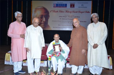 Tribute to Pandit Kishan Maharaj - Vijay Shanker e-mail: vijaydance@gmail.com March 20, 2012 Rich tributes were paid to the great tabla maestro, late Pandit Kishan Maharaj as his birth anniversary was observed with a classical music program on February 22 at Ravindra Natya Mandir, Mumbai. The program was organized by leading suburban music organization known as Iyer Foundation. Iyer Foundation is completely devoted to classical music and dance and has been established by renowned tabla maestro Pandit Balakrishna Iyer and supported by his vocalist wife Jyoti Phagre Iyer. The highlight of the program was the felicitation of 92 year old harmonium wizard Pandit Purushottam Walawalkar, who has accompanied several performers in his illustrious career. ![]()