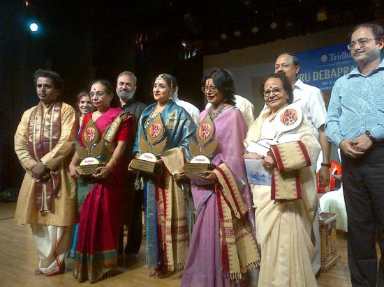 6th Guru Debaprasad Award - Ashish Mohan Khokar e-mail: khokar1960@gmail.com Photos courtesy: Tridhara April 13, 2013 Odisha continues to be an active place for dance, festivals and awards. After Delhi, Chennai, Bangalore, it is Bhubaneswar now in term of dance density (number of events, awards, festivals, students, teachers). Nay, Orissi or Odishi today is the second most learnt dance style of and in India, after Bharatanatyam, nationally and internationally and that itself is quite a feat in 50 short years, since the form got formally established and accepted by the national academy for dance, drama and music (the SNA) as a classical one. Four gurus - Pankaj Charan Das, Kelucharan Mohapatra, Debaprasad Das and Mayadhar Raut- are held for its codification, formatting for stage and growth. Of them, thanks to Debada and his ace disciple Indrani Rahman, it first went national and international. Guru Debaprasad Das needs little introduction to the committed or the cursory reader of narthaki, having platformed many gurus (indepth in my Dance History Column that ran for 3 years and in review writings before that for over 10 years, on this portal). He is the main guru who first made Orissi, or Odissi or Odishi, international. Much before Orissi was known even to rest of India, this guru made it international. Thanks to his ace student, the great Indrani Rahman, Debada was propelled into the orbit of world dance and taken to America and Europe, much before any Orissi main gurus had gone abroad. Thus, he is also a pioneer in more ways than one. Did you know this guru was multi-talented? Have you seen sketches of his dances? Have you seen his work on astronomy? I discover such and many more nuggets every time I open the over 70 trunks of the famed Mohan Khokar Dance Collection (www.dancerarchivesofindia.com). ![]() Gajendra Panda, Radha Shridhar, Ashish Khokar, Vyjayanthi Kashi, Shovana Narayan, Aloka Panikar, Ashok Kumar Tripathy Guru Debada died very young because even the gods loved him. At 56 he was gone, leaving a bunch of very distraught though devoted students, like Durgacharan Ranbir and Gajendra Panda. Sure enough, Indrani continued in her mission with vision and many other younger foreigners like Ramli Ibrahim too learnt Odissi after Bharatanatyam, but these two gurus in India remained on ground and have institutionalized the Guru Debada tradition. And now in last few years, guru Gajendra Panda has surpassed all in guru bhakti by instituting awards in memory of his guru, whom he has worshipped like an Eklavya. So to Odisha we all went last week, when mercury soared 42 degrees, to be a part of the 6th Guru Debaprasad Award, a two day function (April 5 & 6) featuring such seniors as gurus Aloka Panikar, Radha Shridhar, Shovana Narayan and Vyjayanthi Kashi. (One for each major form). All were honoured with the 6th Debaprasad Award and performed on the occasion. AIR Delhi top staff artiste, Pt. Kailash Sharma, able successor to Pt. Hariprasad Chaurasia level of art, though a student of Prakash Saxena at the Gandharva Mahavidyalaya, regaled all with a short flute recital, to set the mood. At best of times, guru Gajendra Panda is disorganised! He also doesn’t have many extra hands or volunteers to help with such an ambitious event. But his heart wins all and his devotion to dance is transparent. His main gift and talent lies not in organization, nor even in dancing but in choreography and teaching. Each of his works have that sense of material-from-the- soil and each student fares equally as he has trained them all well. While other festivals and award functions seem to have got more support both from Odisha govt and corporates and thus more established, Gajendra’s awards and festivities is truly a people’s festival. Punctuality and perfectionism is given a go by (like for most of India these words are an illusion!) and generally some anomalies abound like putting an unknown child dancer –no matter how talented - among seniors! That the child proved her mettle very well, saved the day for all involved. Some professionalism will help, although managing all this alone is not easy, though no excuse either. Shovana Narayan began the festival with flair, as only she can. With paltry material she can spin tales of mythology with aplomb. Her material sometimes can be thin but her artistry and showmanship makes for it. Within minutes, she had the audiences in hand, clapping at each single step. Odias are very art loving audiences and respect visiting artistes much. Lot of feet touching happens out of genuine respect and many throng for autographs. In that, Gajendra gave Odia audiences a feast. Audiences in Bhubaneswar are also truly cultured, though the press photographers are not always, blocking view of all at crucial moments. ![]() Shovana Narayan ![]() Ananya Kannan ![]() Tridhara group ![]() Tanushree Shankar’s group Before Shovana, Tridhara group had presented Bande Mataram and it set the tone for the festival with theme of India and Mother India. A passable production. Child dancer Ananya Kannan delighted all with her Orissi in the ten minute relief item (and next day with her equally good Bharatanatyam rendition. She is a natural dancer. Period.) before the huge cast of Tanushree Shankar took over with its Jagaran, a ballet on Vivekananda, concluding again with Vande Mataram. Looking at these works, one felt nostalgic of Uday Shankar days and style, which now Tanushree retains, with her own touch. To maintain a dance-ballet corps or company is not easy and the cast showed how well they work as a team. The Award Ceremony was itself sweet and simple the next day and speeches over (a tad too long, especially with three artistes waiting and a 45 minute delayed start!) Vyjayanthi Kashi took to stage with her over-smiling face and slow-paced Kuchipudi. I use the word “slow-paced” because for most audiences, Kuchipudi is mistaken to be a fast-paced Bharatanatyam! In fact, one Kuchipudi