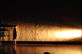 'Restricted view' by Anoushka explored a choice of four tasks she appointed to her body and its surrounding space – flipping, rotating, sliding and resizing. Supported by M Natesh on lights, Anoushka created an illusory thirteen minutes with a series of often symmetric sets of movements, abiding her own rules, also playing very intelligently with various shadows - elongated, or punctuated. Going along with the background music created by Darbuka Siva, she constantly changed her spatial references and the quality of constraints in her movements - shifting the degree of smoothness in her movements as well as the mood of her presentation, from an apparently lightweight, unregulated motion of an almost free body barely attached to an axis or a stand (which, in practice had to be extremely controlled by the center of the body for the movement to look so casual but unexaggerated), up to a level of heavy scratchy friction. ‘Restricted view’ ended with a split in the view of the audience with the help of a slightly larger than life projection of the dancer – allowing only certain parts of her body to be highlighted, restricting the rest, one split part complementing the other. ![]()