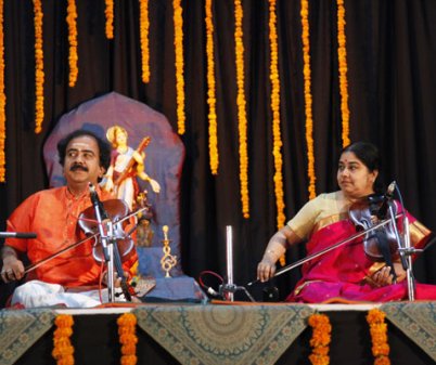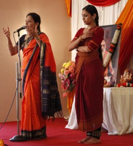 The 3rd Naada Bindu Festival for the Arts: Sacred Encounters - Usha Sundaresan Pics courtesy: CNB April 27, 2013 The 3rd Naada Bindu Festival for the Arts was presented by Chinmaya Naada Bindu from April 19 to 21 as a 3-day residential arts retreat at the Chinmaya Vibhooti Ashram in Kolwan near Pune. Aptly titled ‘Sacred Encounters,’ the holistic aspect of the arts came through clearly in this thoughtfully curated festival, which combined impressive performances by 9 world-renowned performing artistes and their accompanying groups along with arts workshops and spiritual discourses. ![]() Invocation by children The inaugural event on April 19th set the tone with a heartwarming musical invocation by children from the neighboring villages receiving free music training under Chinmaya Naada Bindu’s social responsibility scheme. The festival’s first evening performance began with masterful Carnatic music by the renowned sister duo, Ranjani and Gayatri of Chennai ably supported by H N Bhaskar (violin) and Delhi Sairam (mridangam). Their voices complementing, merging, paralleling in a plethora of variations, they kept the audience spellbound. ![]() Ranjani and Gayatri The second day began at 6.45am with the serene Hindustani vocal concert by Jayateerth Mevundi. The finesse in rendition of raag Bhairav alone went to prove why he is referred to as Bhimsen Joshi in the making. The accompanying artistes Keval Kavale (harmonium) and Shantanu Shukla (tabla) proved their mettle. The birth of Sri Rama was then vibrantly celebrated with a discourse by Swami Tejomayananda, Global Head, Chinmaya Mission along with bhajans and a colorful tableau enacted on stage by volunteers. Swami Tejomayananda compared life with music and how life can be a melody and not a malady! ‘Bhava’ is an important element in music, so also is the right attitude to life. When all the elements like ‘raga’, ‘laya’, ‘tala’, ‘sur’ are in place, then music is pleasant. Similarly, if life too has all the elements in their place, it will be pleasant. The ‘Sa’ (“Shadja”) as the foundation note in music is present in every ‘raga.’ So also, if devotion to the divine is made the base of our life, then life will always be a sweet melody. ‘Parama Tatvam,’ the thematic Bharatanatyam dance presentation by Rama Vaidyanathan stood out for its perfection of technique and choreographic brilliance. Her ‘Ardhanarishvara Ashtakam’ by Adi Shankaracharya emphasized the male and female aspects of creation with alternating grace and vigor. In her depiction of a verse from Bhagavatam, Krishna was shown as being viewed through the eyes of different characters such as kings, wrestlers, devotees, friends, citizens and elders and Kamsa himself. It intelligently brought out the nine emotions (navarasa). The concluding Marathi abhang of Janaabai “Utha Panduranga” was a joyous treat. Rama Vaidyanathan’s accompanists K Venkateshwaran (vocal), Karaikudi Sivakumar (nattuvangam), Viju Shivanand (violin) and Arun Kumar (mridangam) excelled in bringing out every nuance of the dance through their music. ![]() Rama Vaidyanathan ![]() Lalgudi Krishnan and Lalgudi Vijayalakshmi ![]() Rakesh Chaurasia and Rupak Kulkarni ![]() Seraikella Chhau Lalgudi Krishnan and Lalgudi Vijayalakshmi captured the hearts of the audience with their divinely inspired Carnatic violin performance on 21st April morning. Their Ragam Tanam Pallavi was the highlight of their performance. Rakesh Chaurasia and Rupak Kulkarni offered a flute duet with Pandit Kalinath Misra on the tabla. Their mischievous repartee among themselves and with the audience truly resonated with the audience. They rendered raag Ahir Bhairav with alaap, jod, jhala with a skillful instrumental question and answer with Pandit Kalinath Mishra, ending with soulful medley of bhajans and dhuns in Pahadi and other ragas. In the words of Swami Tejomayananda - a fluteful and sportful, a fruitful and soulful offering! The final performance of the festival was the Seraikella Chhau by 12 drummers and dancers from Jharkand. Their faces covered fully by masks and clad in splendid costumes the dancers depicted images from nature such as Night & Moon, Eagle & Serpent, Flower & Spring etc. The performance of this all male group led by scholar/performer Shashadhar Acharya had a touch of fantasy, mystery, and enigmatic quality. Two lecture demonstration sessions were well attended and greatly enjoyed by the audience. The Lalgudi duo spoke superbly on the nuances of the techniques in Carnatic violin. To demonstrate the unique Lalgudi style, which is close to the Gayaki style, they played two pieces – one, a composition by Mahakavi Bharatiyar and a Tillana composed by their guru and father Lalgudi G Jayaraman. ![]() Ramaa Bharadvaj & Rama Vaidyanathan The workshop on Bharatanatyam by Rama Vaidyanathan was moderated skillfully (and with humor) by Ramaa Bharadvaj – director of dance for Chinmaya Naada Bindu. Together they touched on many subjects including historical connections of Bharatanatyam, its contemporary influences, choreographic inspirations, spiritual significance, and even on the role of anklet bells in Bharatanatyam. In the words of a young student from the Maharashtra Institute of Technology, “Until this presentation we were not convinced about Bharatanatyam’s relevance to us. The passion and conviction of these two artistes have convinced us now.” ![]() Audience at the lec-dem |