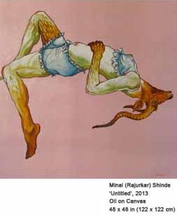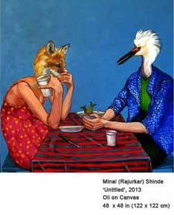 Chimera - Padma Jayaraj e-mail: padmajayaraj@gmail.com Photos: Courtesy the artist May 4, 2013 Caught within a surreal world where animalised humans peep at you, you feel like Alice in Wonderland. This is not a world of mutants but your fellow- travellers down the evolutionary path. And the paintings reflect a deeper reality for you. ‘Chimera’ by Minal (Rajurkar) Shinde (9th to 15th April 2013, at Jahangir Art Gallery, Mumbai) is a visual parallel to the great allegories in world literature. The ironical title points to the real in combinations of the unreal. And the psychological insight of the artist unravels the truth hidden in the layers of the surreal down human growth and development. Intellectual in content, philosophical in delineation, the show is curated with a fine aesthetic sensibility. ![]() ![]()