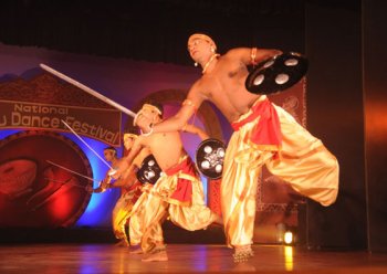 The first program of the concluding evening was ‘Jhalak’ by Mayura Art Centre, Bhubaneswar, showcasing different body gestures with intricacies of leg movements of Mayurbhanj Chhau style followed by ‘Sagarsangam’ depicting the union of river with sea. The second program was Seraikella Chhau by Rajakiya Chhau Nritya Kendra, Seraikella, who presented ‘Shrusti’ portraying the relationship between nature and human beings. Their next item was ‘Ratri’ based on Ratrisukta of Rig Veda on removing the evils of darkness followed by ‘Chandrabhaga,’ the tragic love behind the creation of the great Sun Temple of Konark. ![]() Shiva The artistes of Swarnachuda Chhau Institute of Nilagiri presented the war dances consequent upon their victory in the battle. The next presentation was ‘Mahishasuramardini’ by artistes of Sebajatna Chhau Prashikshana Kendra, Purulia, who by their vigorous acrobatic movements and nimble stepping embellished with brilliant colourful masks mesmerized the audience. The last item was ‘Shradhanjali’ by Nichhuapada Uttarsashi Chhau Nrutya Pratisthan, Moroda, Mayurbhanj depicting the evolution of Chhau dance with war dance followed by Shiva, Krishna and other mythical characters giving a fitting tribute to the gurus and royal personalities who contributed to the promotion of Chhau dance. The dance was marked for its rhythmic complexities. The program was conducted on both evenings by Dr. Mrutunjaya Rath and Sanghati Pani. |