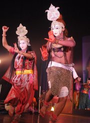 National Chhau Dance Fest in Bhubaneswar Pics courtesy: Odisha Tourism June 4, 2013 Reduced to two days due to inclement weather, the 3-day National Chhau Dance Festival organised by Odisha Sangeet Natak Akademi started on May 29 with great enthusiasm at Rabindra Mandap, Bhubaneswar. The festival held under the auspices of Department of Tourism & Culture featured some brilliant items from the three different styles of Chhau dance and attracted the connoisseurs despite incessant rain. ![]() Ratri ![]() Peacock Dance ![]() Dandi Mahabharata ![]() Mahishasuramardini The first program was ‘Ratri’ based on Seraikella Chhau by Acharya Chhau Nrutya Bichitra, New Delhi, which personifies into a Goddess to protect from evil forces of the darkness. This was followed by ‘Peacock Dance’ depicting the beauty, majesty and grandeur. The last presentation was ‘Radha Krishna’ depicting their eternal love. The choreography was by Guru Sashadhar Acharya. ![]() Radha Krishna The second program of the evening was ‘Dandi Mahabharata’ presented by Angika, Bhubaneswar, which portrayed Sakuni as the main game planner and conspirator to eliminate the Kauravas. The item choreographed by Guru Sadashiva Pradhan was more theatrical punctuated with music and dialogue. The ‘Mahishasuramardini’ episode by Sitalapur Chhau Dance Party, Purulia, had a vigorous presentation with a lot of acrobatics and body movements adding flavor to the colourful masks of different characters. This was followed by ‘Deva Deva Mahadeva’ and ‘Adinrutya’ by the reputed Dhakshinasahi Chhau Nrutya Pratisthan, Baripada. The concluding program was ‘Abhimanyu Badha’ based on Mahabharata by Bamanaghati Chhau Nrutya Pratisthan, Rairangpur. The episodes exhibited how Abhimanyu, the young warrior son of Arjuna, took up the challenge with undaunted courage but failed to come out of the Charkravyuha and was mercilessly killed by seven Kauravas after giving a brave fight. ![]() Jhalak ![]() Krishna & other mythological characters